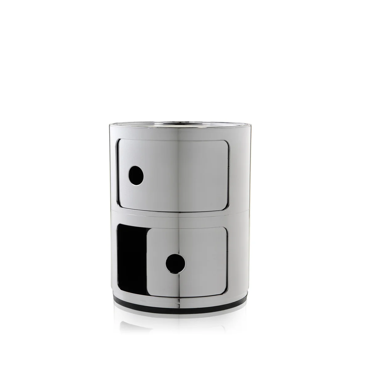Die Componibili gibt es rund und quadratisch und sie können auch auf Rollen geliefert werden. Flexibel, funktional, praktisch: Die Componibili sind ein Designklassiker mit dreissigjähriger Tradition, der wegen der Prägnanz und Innovation der Gestaltung viel Anerkennung erlangt hat und längst in die ständige Ausstellung des Museums of Modern Art in New York und ins Centre George Pompidou in Paris gerollt ist.