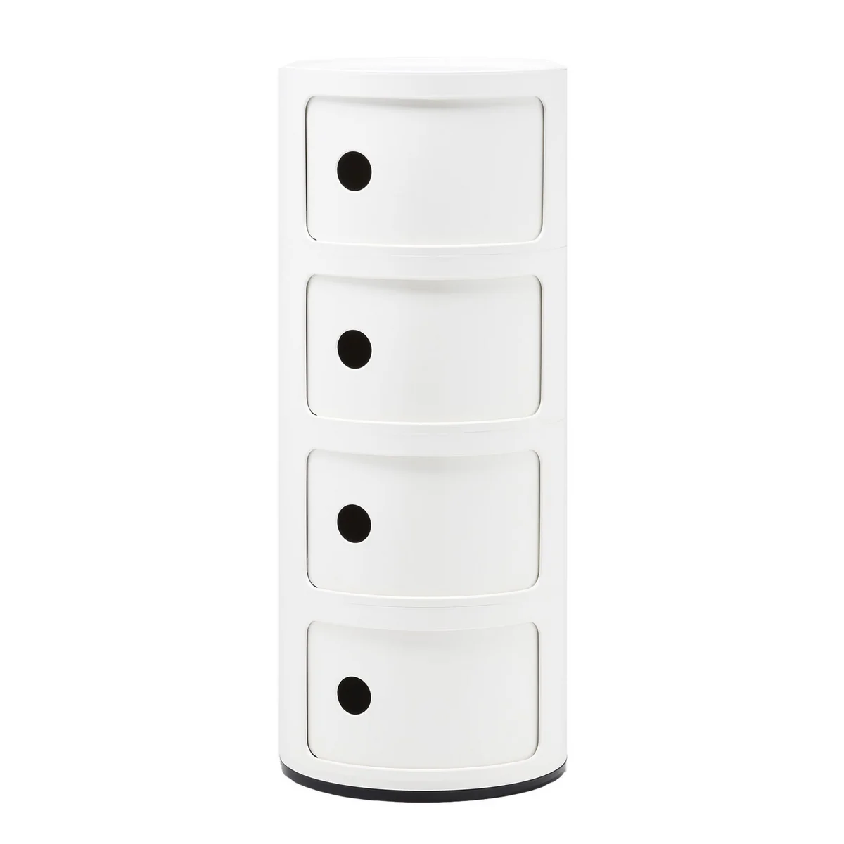Die Componibili gibt es rund und quadratisch und sie können auch auf Rollen geliefert werden. Flexibel, funktional, praktisch: Die Componibili sind ein Designklassiker mit langjähriger Tradition, der wegen der Prägnanz und Innovation der Gestaltung viel Anerkennung erlangt hat und längst in die ständige Ausstellung des Museums of Modern Art in New York und ins Centre George Pompidou in Paris gerollt ist.
