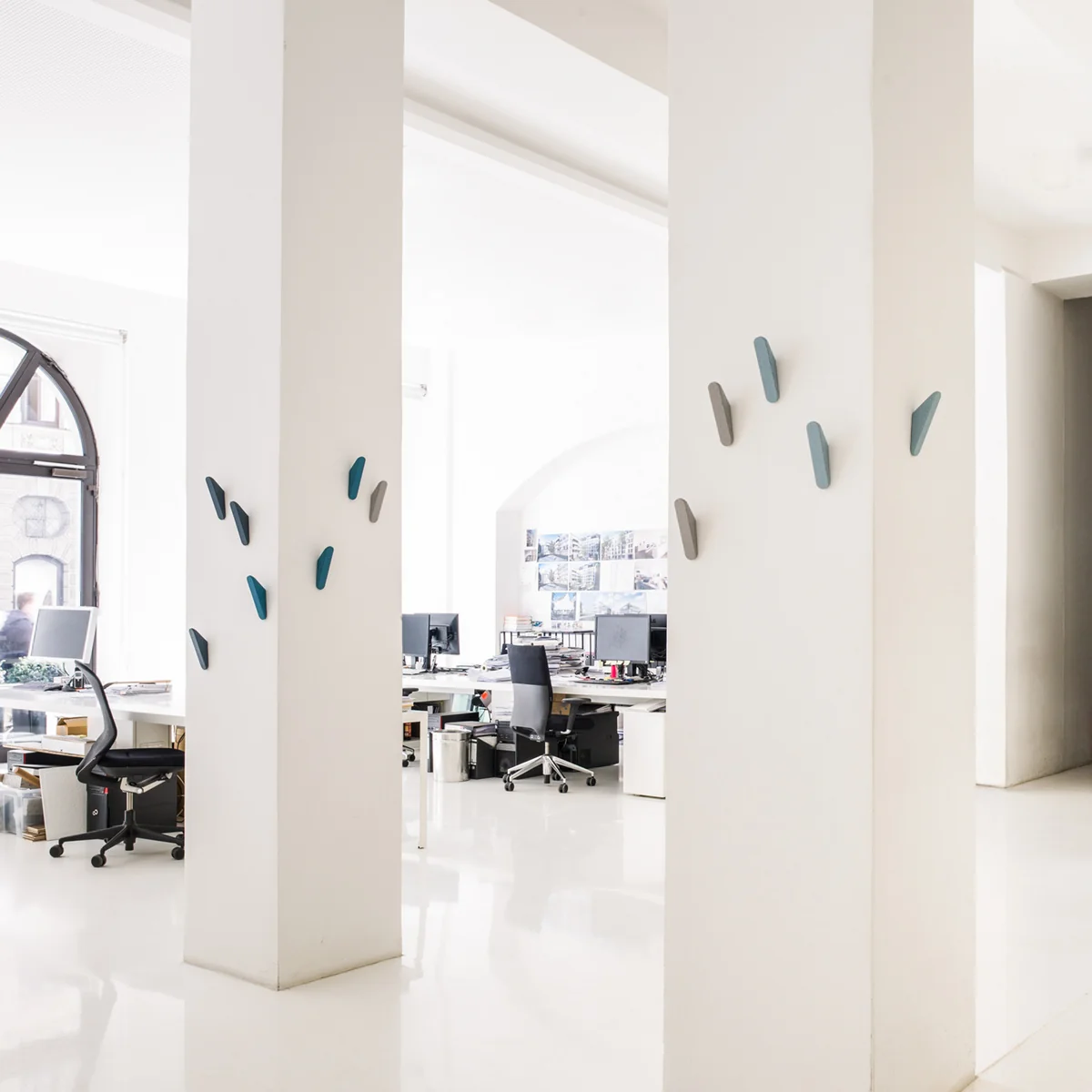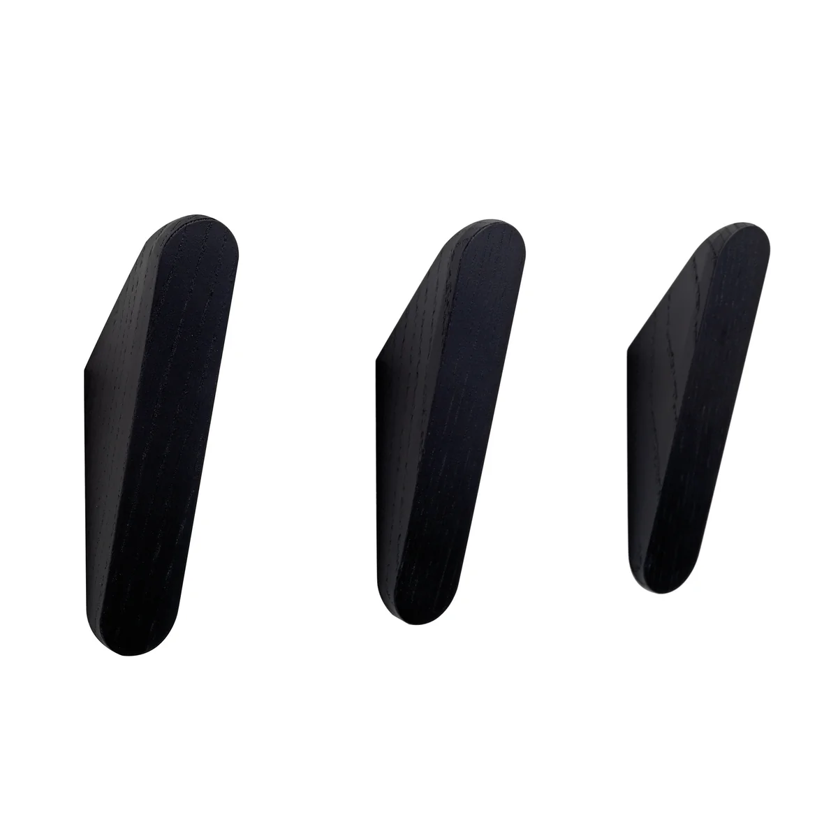 Der Haken in Form eines spitz zulaufenden Dreiecks wird wahlweise aus Walnuss, Eiche oder Nussbaum hergestellt und anschliessend geölt. Das Eichenholz gibt es auch in offenporig lackierten Versionen, die sich mit ihren dezenten Farben in die Wohnsituation einfügen. Cut eignet sich ideal als einfache und zeitlose Aufhängung für Jacken und Mäntel und überzeugt mit seinem gelungenen Purismus.