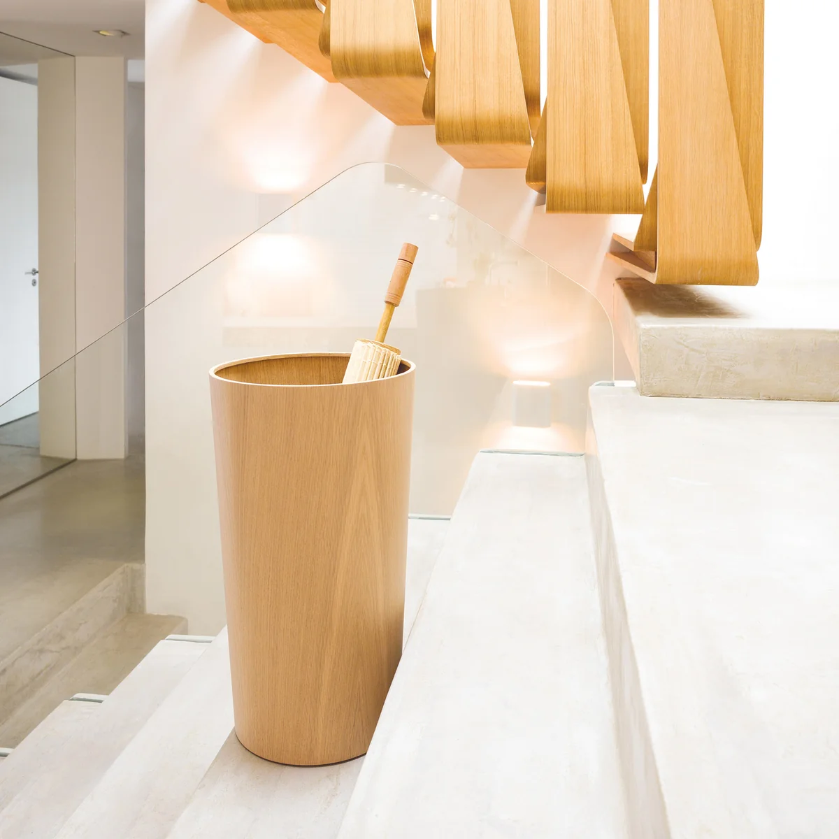 In Nussbaum oder Weisseiche ist der schlichte 0514 Schirmständer erhältlich.