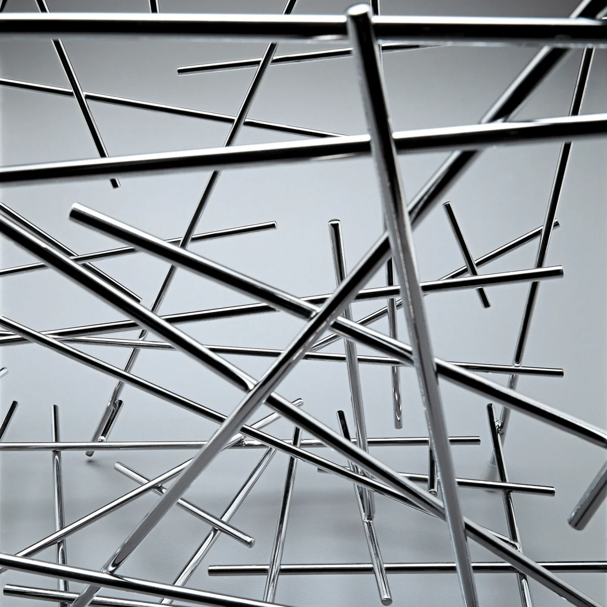 Allen Objekten als der Blow Up Kollektion gemeinsam ist die unverkennbare Handschrift der brasilianischen Brüder Campana. Die scheinbar zufällige Anordnung der einzelnen Metallstäbe, die an ein Mikado-Spiel oder Explosionen erinnert, ergibt mal eine Schale, mal einen Teller oder einen Obstkorb. Interessant ist auch das lebhafte geometrische Schattenspiel, das sich je nach Lichteinfall im Zeitschriftenhalter von Alessi abzeichnet.