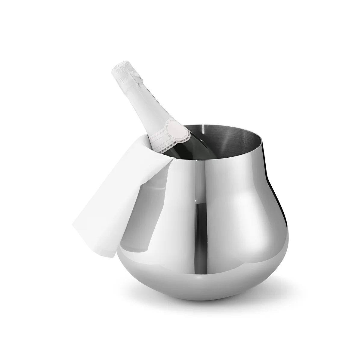 Hergestellt wird der Kühler aus der Sky-Serie aus hochglanzpoliertem Edelstahl. Eine weisse Serviette ist im Lieferumfang enthalten.