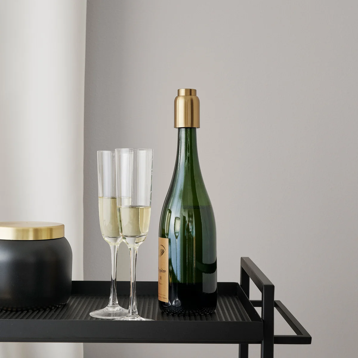 Der Flaschenverschluss wird aus Edelstahl mit Messingbeschichtung hergestellt und eignet sich auch für kohlensäurehaltige Getränke wie Sekt, Schaumwein oder Champagner. Als Teil der Collar Serie ist er eine tolle Ergänzung zu den anderen Küchen- und Barutensilien von Stelton.
