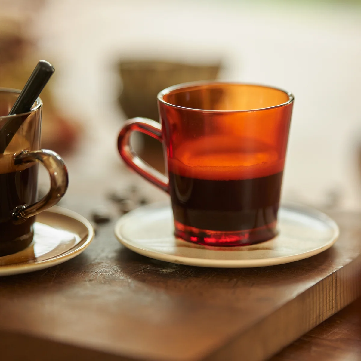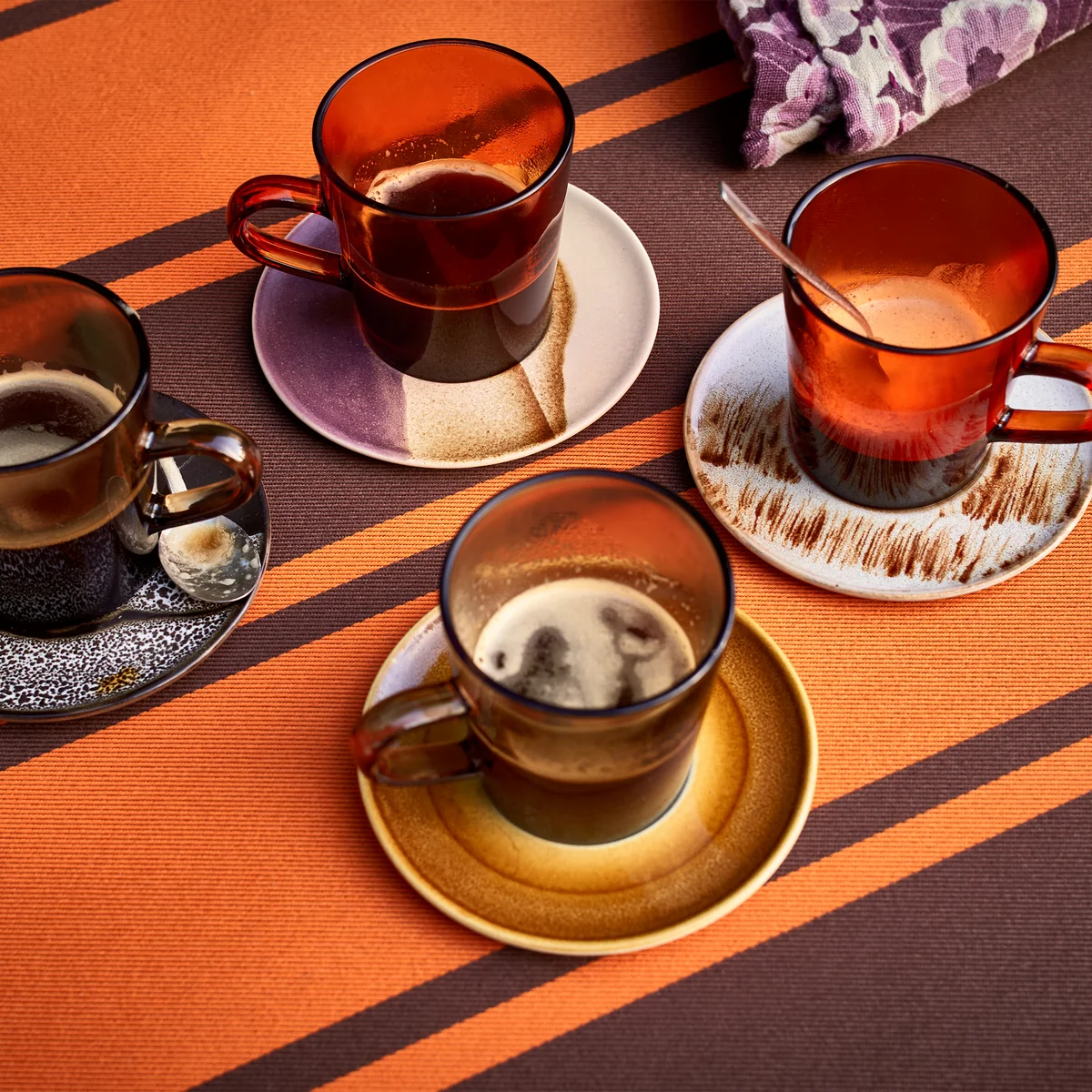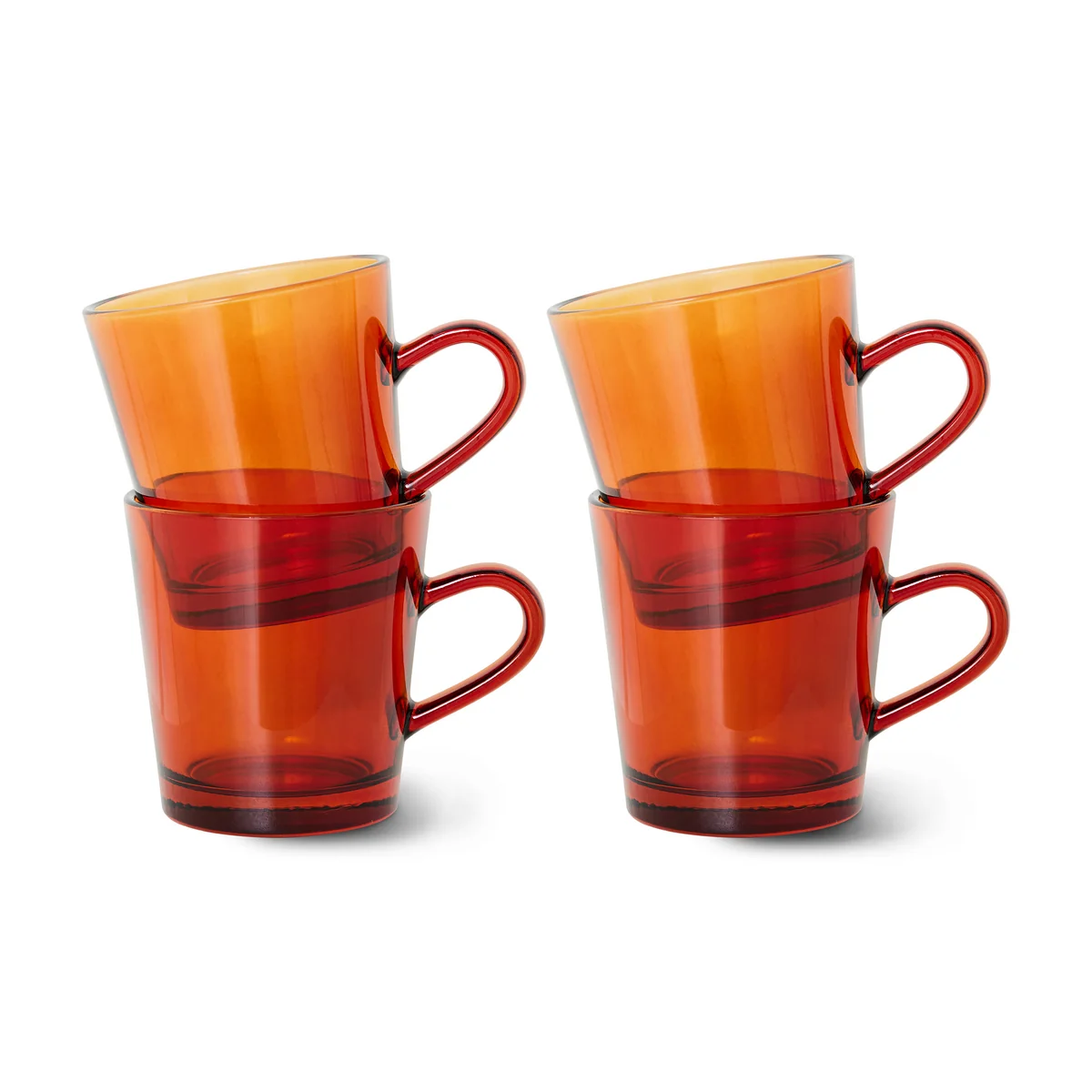 Die 70's Glas Kaffeebecher aus dem niederländischen Hause HKliving begeistern mit ihrer klassischen Silhouette in moderner, frischer Auflage. Das überaus attraktive farbige Glas ist hitzebeständig und somit ideal für allerlei Heissgetränke verwendet werden. Die 70's Kaffeebecher sind im 4er-Set erhältlich und können wunderbar mit weiteren Geschirrelementen der gesamten 70's Kollektion von HKliving kombiniert werden.