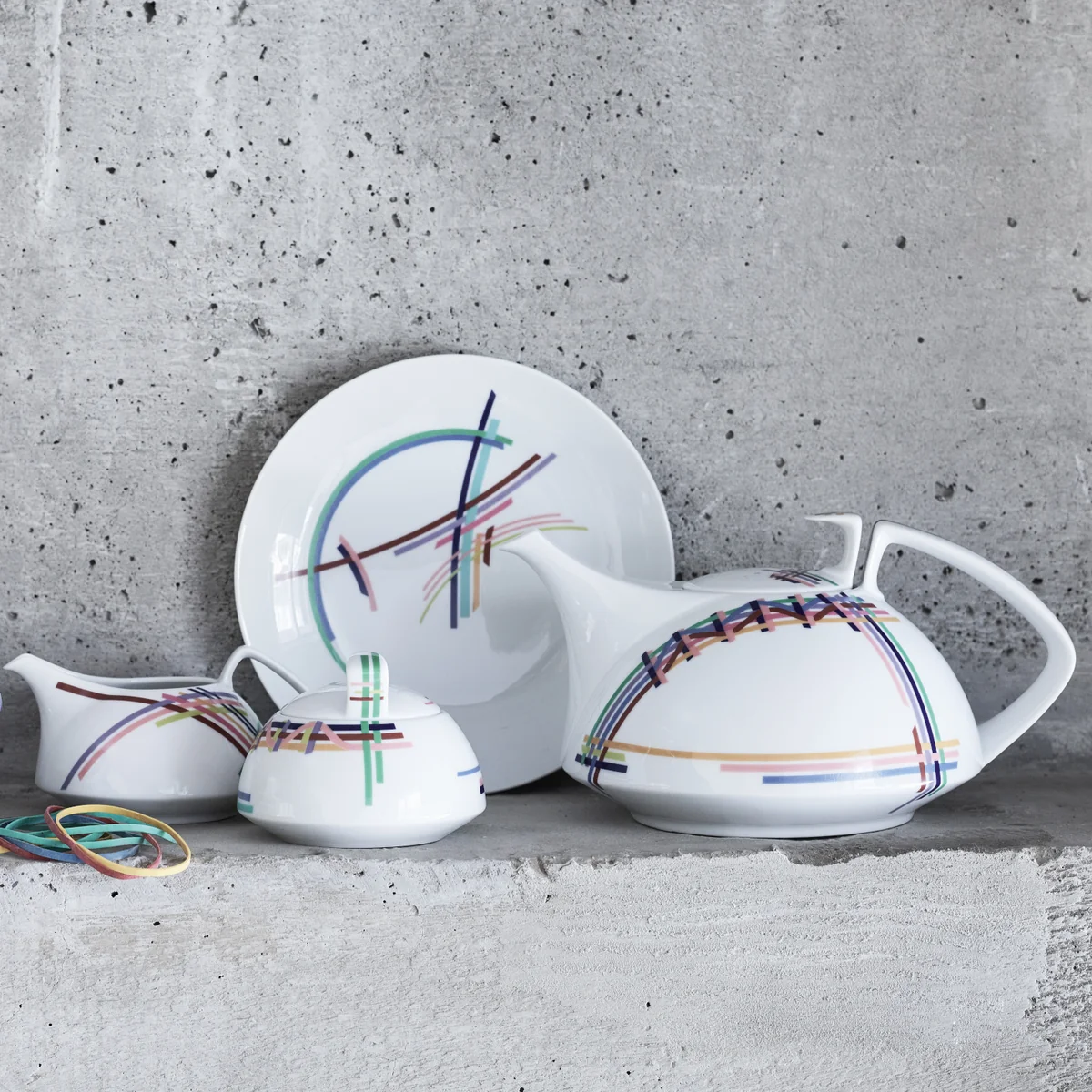 Die Serie zeichnet sich durch ihr puristisches Design mit geometrischen Formen wie Kreisen und Kugeln im Fokus aus. So entsteht ein Geschirr, das zwar vom Bauhaus geprägt ist, jedoch durch seine zeitlose Gestaltung überzeugt.