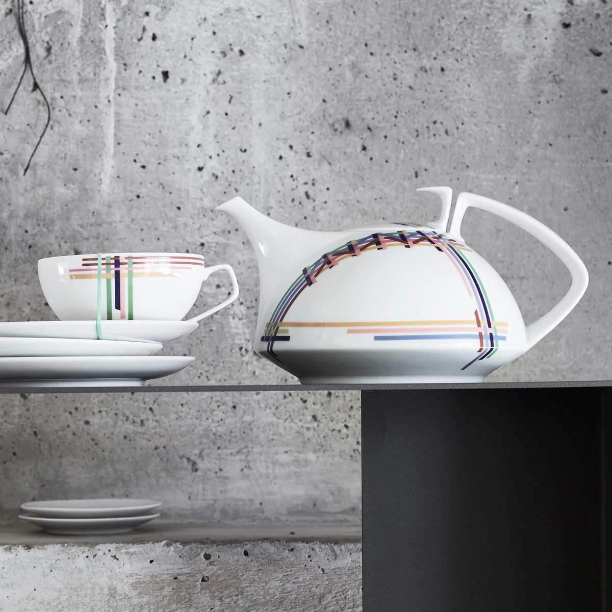 Neben den klassisch weissen Tassen greift Rosental anlässlich des 100-jährigen Bauhaus-Jubiläums das ebenfalls von Gropius entworfene Stripes Dekor wieder auf. Ursprünglich mit Streifen auf weissem Porzellan gedacht, bringt Rosenthal nun in Anlehnung daran ein schwarzes Porzellan mit weissem Dekor auf den Markt.