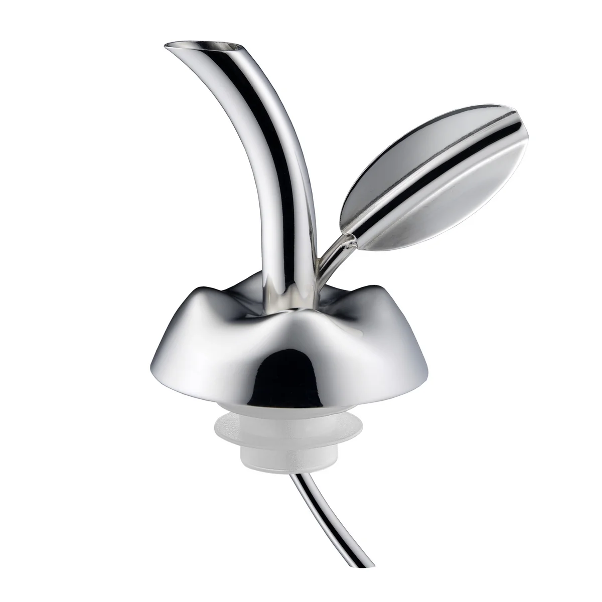 Der Ausgiesser Fior d’olio von Alessi präsentiert sich neu - ohne das ursprüngliche, farbige Glasgefäss. Der schnabelförmige Ausgiesser ist nun noch funktionaler, da er sich nach Belieben auf jeden handelsüblichen Flaschenhals setzten lässt. Damit kann der Fior d’olio zum Beispiel direkt auf die Olivenölflasche gesetzt werden und das Ausgiessen des "grünen Goldes", wie Olivenöl auch genannt wird, so noch genauer dosiert werden.
