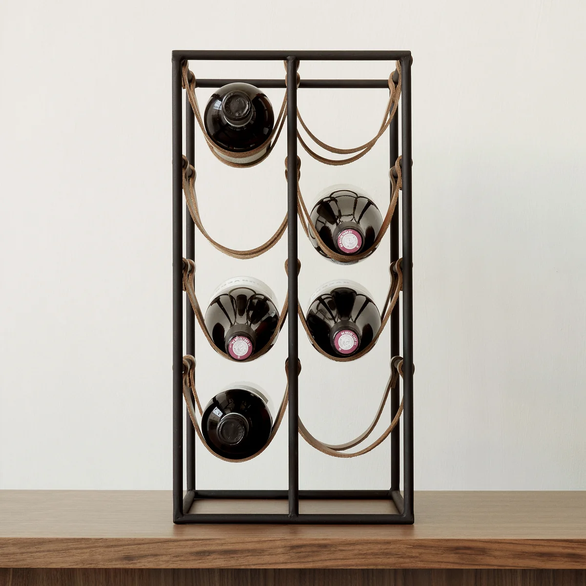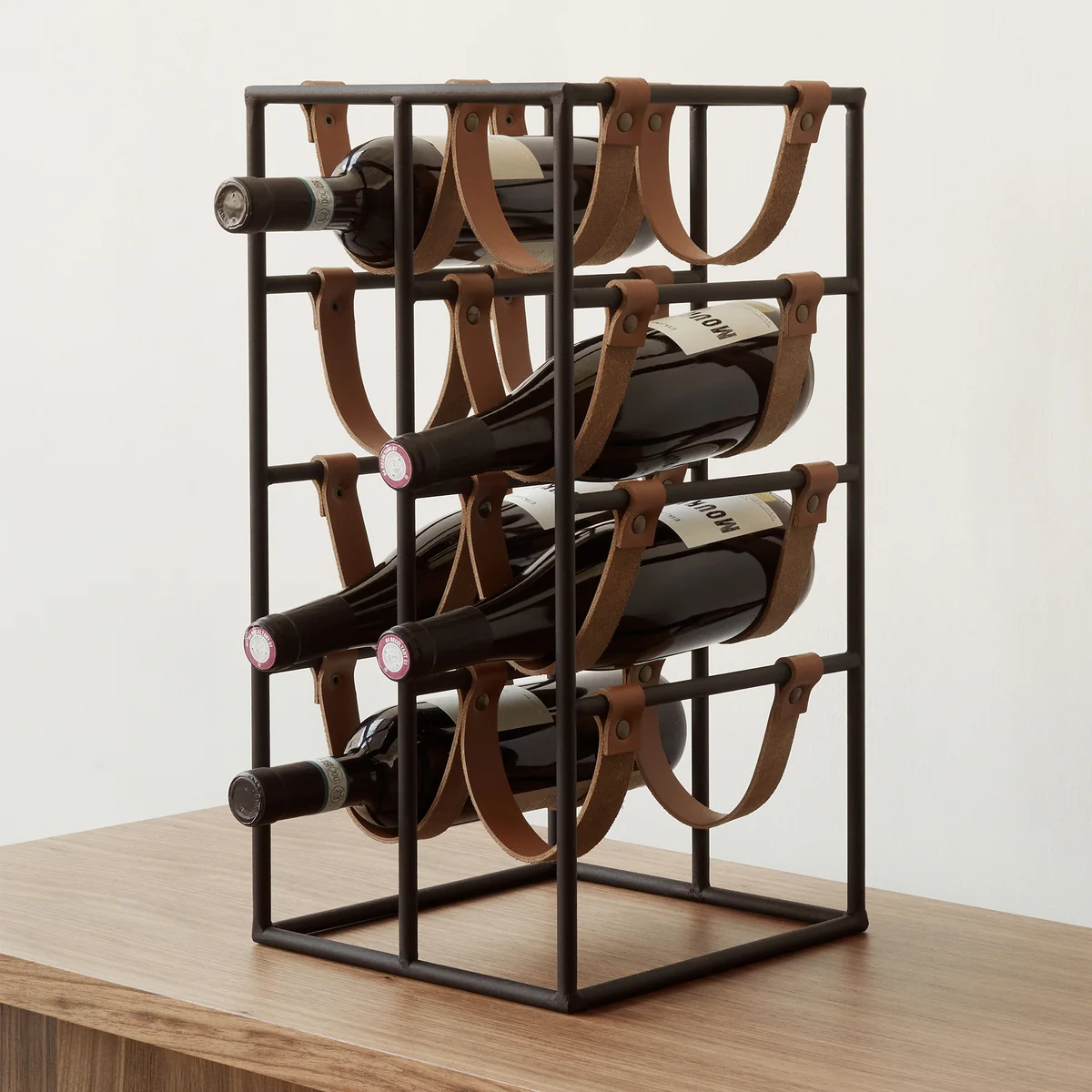 Audo - Umanoff Weinregal für 8 Flaschen, Stahl schwarz (RAL 9005) / Leder braun