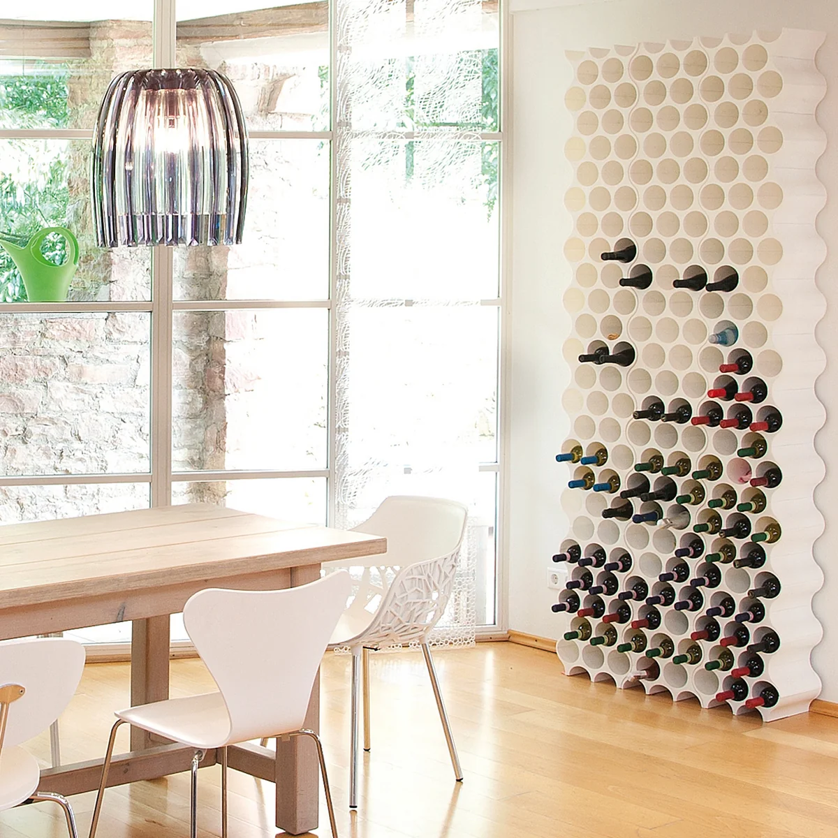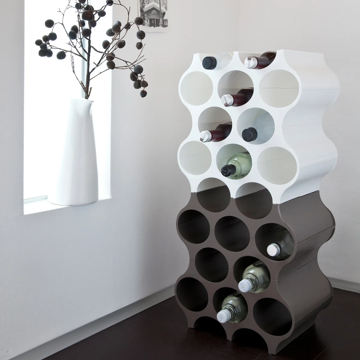 Set- Up ist ein modulares Flaschenregal von Koziol, das sich beliebig in Höhe und Breite erweitern lässt. Im Weinkeller oder der Küche können ganze Flaschenregal-Wände erbaut werden, damit Wein, Sekt und andere feine Tropfen gut gelagert und stets zur Hand sind.
