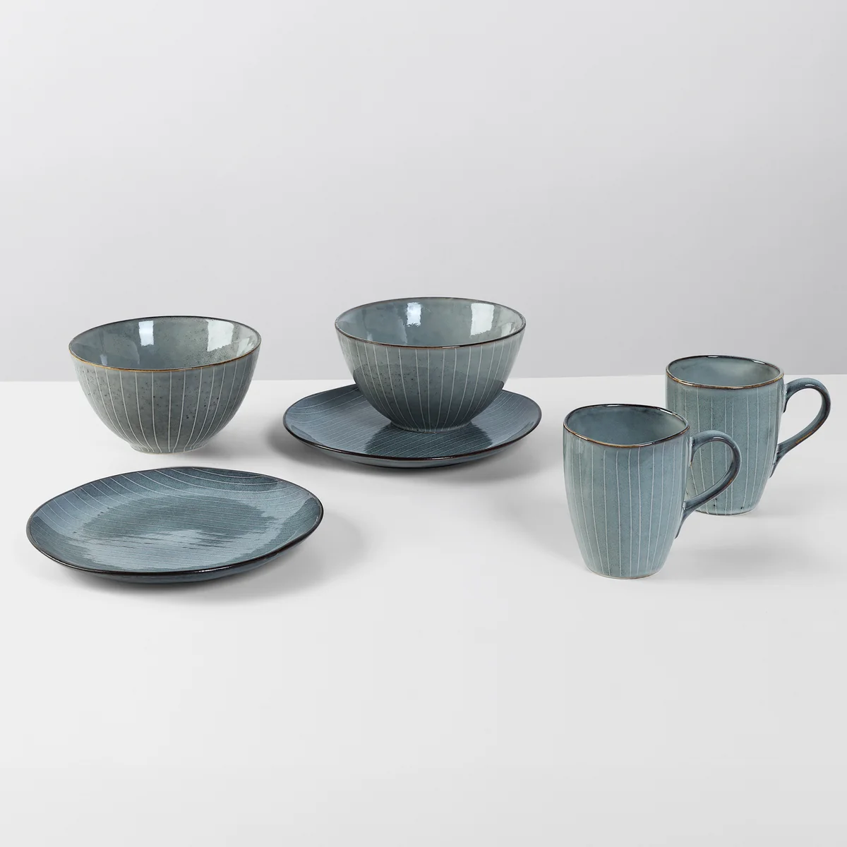 Die Nordic Sea Serie von Broste Copenhagen ist aus spülmaschinenfestem Steingut hergestellt und in verschiedenen Farben erhältlich. Das Set lässt sich problemlos durch weitere Teile der Serie ergänzen.