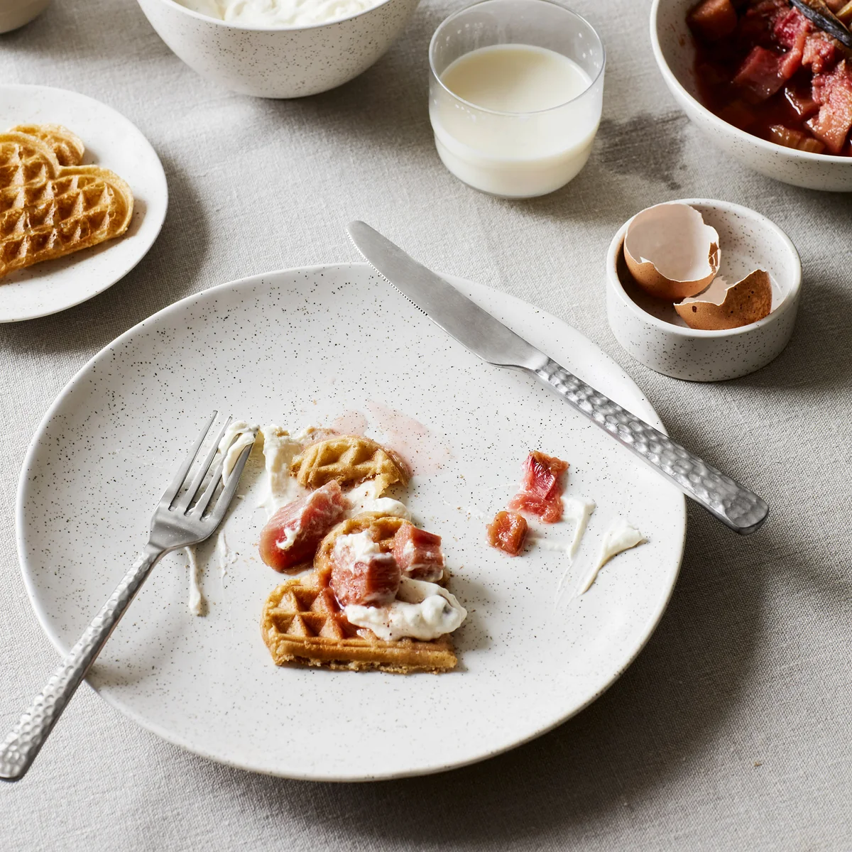 Broste Copenhagen stellt die Teller aus Steinzeug mit einer matten Glasur her. Sie eignen sich für die Mikrowelle und den Geschirrspüler. Da jedes Stück von Hand glasiert wird, können sie ein wenig in Farbe und Ausdruck variieren.