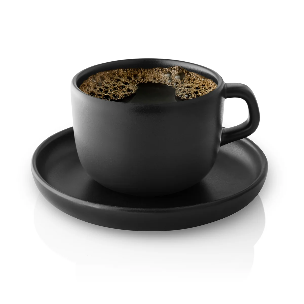 Die Tasse mit Untertasse aus der Nordic Kitchen-Reihe von Eva Solo besitzt einen markanten und auffälligen Landhaus-Charme, der die nordische Note der Serie verbreitet. Hergestellt aus hochwertigem Steinzeug, verfügen die Tasse und die Untertasse über eine wunderschöne matte Optik, die sich der Tischeinrichtung perfekt fügt. Nicht nur Kaffee, sondern auch Tee, Milch, Kakao oder andere Heissgetränke lassen sich aus den modernen Tassen geniessen. Sie können mit weiteren Produkten der Nordic Kitchen - Reihe kombiniert werden.