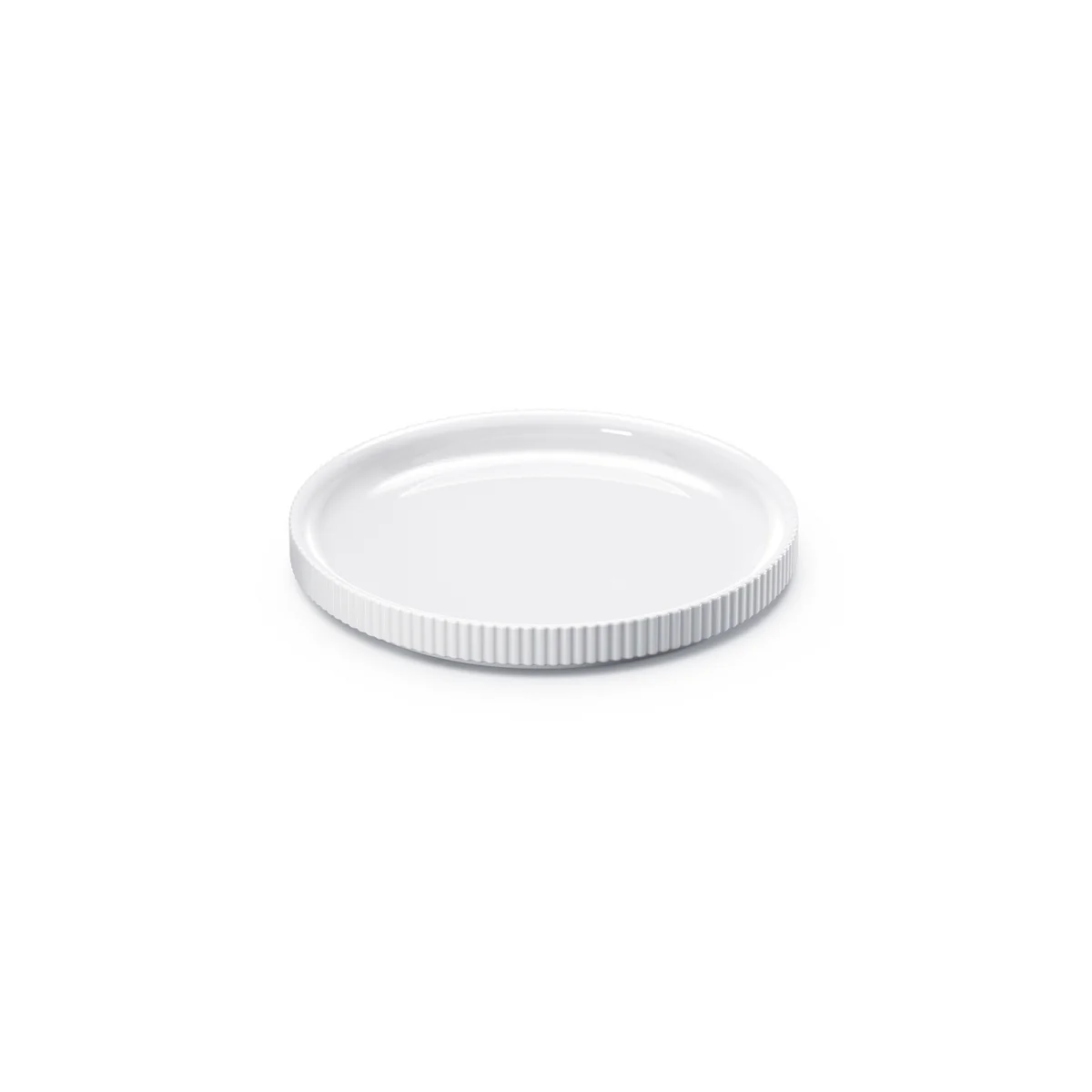 Der Teller wird aus weissem Porzellan hergestellt und ist in verschiedenen Grössen erhältlich.