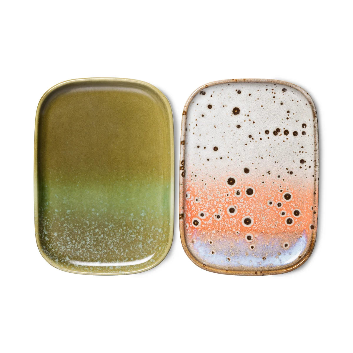 Das 70's Tablett-Set von HKliving aus Keramik ist die ideale Ergänzung zu dem 70's Geschirr und ist in verschiedenen Ausführungen erhältlich. Neue Welten wurden entdeckt, grosse Fortschritte sowohl auf der Erde als auch zum ersten Mal auf dem Mond gemacht. Dieses neue Set von Trays erweist sich als Ode an diese besondere Zeit. Die Tabletts, sowie die reaktive Glasur und das hochwertige Material präsentieren grosse Fortschritte sowohl auf der Erde als auch auf dem Mond. Die wunderschönen Designs der reihe sind eine exklusive Hommage an die Zeit, die durch lauter Neuheiten geprägt ist und eine ganz besondere kreative Grundlage bietet.