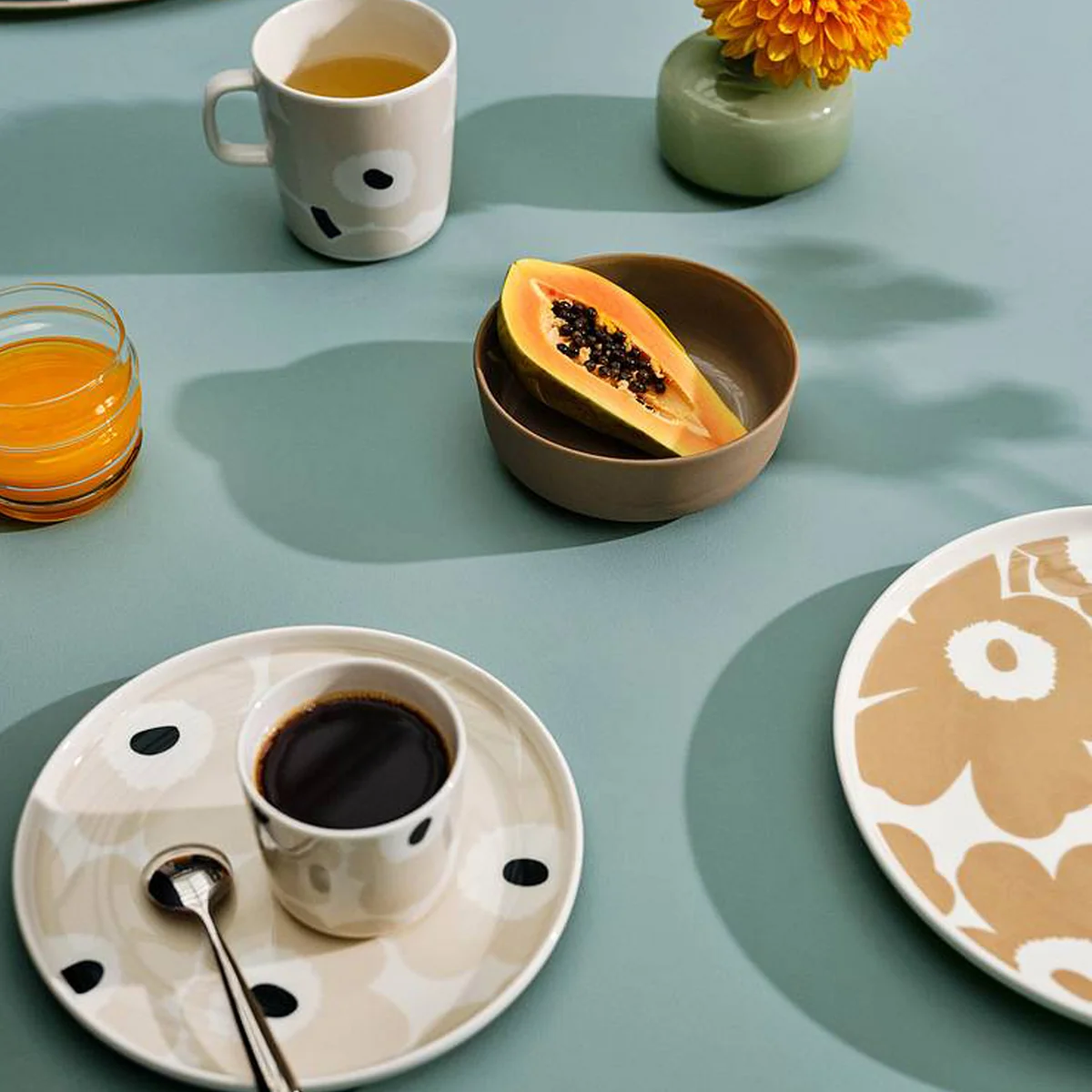 Seit 1964 hat das Unikko-Muster von Maija Isola einen Siegeszug durch alle Bereiche gefeiert: Mit leuchtenden Farben, schwungvollen Formen und simplen Linien ist das Unikko-Muster eine Ikone des finnischen Designs. Heute ist das ausdrucksstarke Design nicht mehr nur auf Textilien, sondern auch auf allerlei anderen Produkten wie etwa der Teller anzutreffen.
