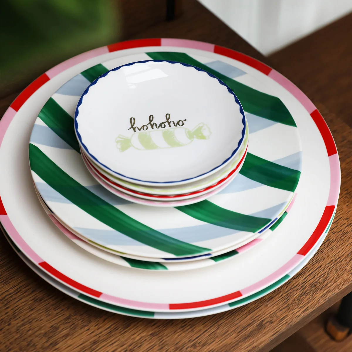 Die kleinen Teller, ebenfalls aus feinstem Porzellan, werden durch charmante, handbemalte Designs von Zoe Corbey zu einem besonderen Highlight. Ideal für festliche Tischarrangements und als Begleitung zum Coupé Curve Ornament, runden sie das Set harmonisch ab.