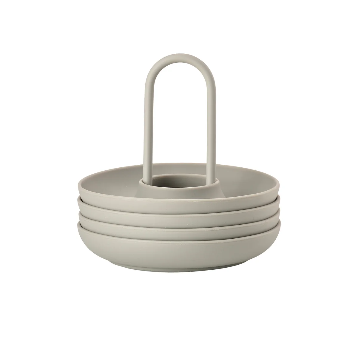 Die vier Eierbecher in einem Gestell aus der Singles Serie von VE2 für Zone Denmark können mit nur einer Hand an den Tisch gebracht werden. Die geschwungene Basis fängt sowohl Salz als auch Eierschalen ein - und damit auch die Aufmerksamkeit der Gäste. Funktionell und dekorativ zugleich, sind die Eierbecher mit Halter die perfekte Ergänzung für jeden Frühstückstisch.