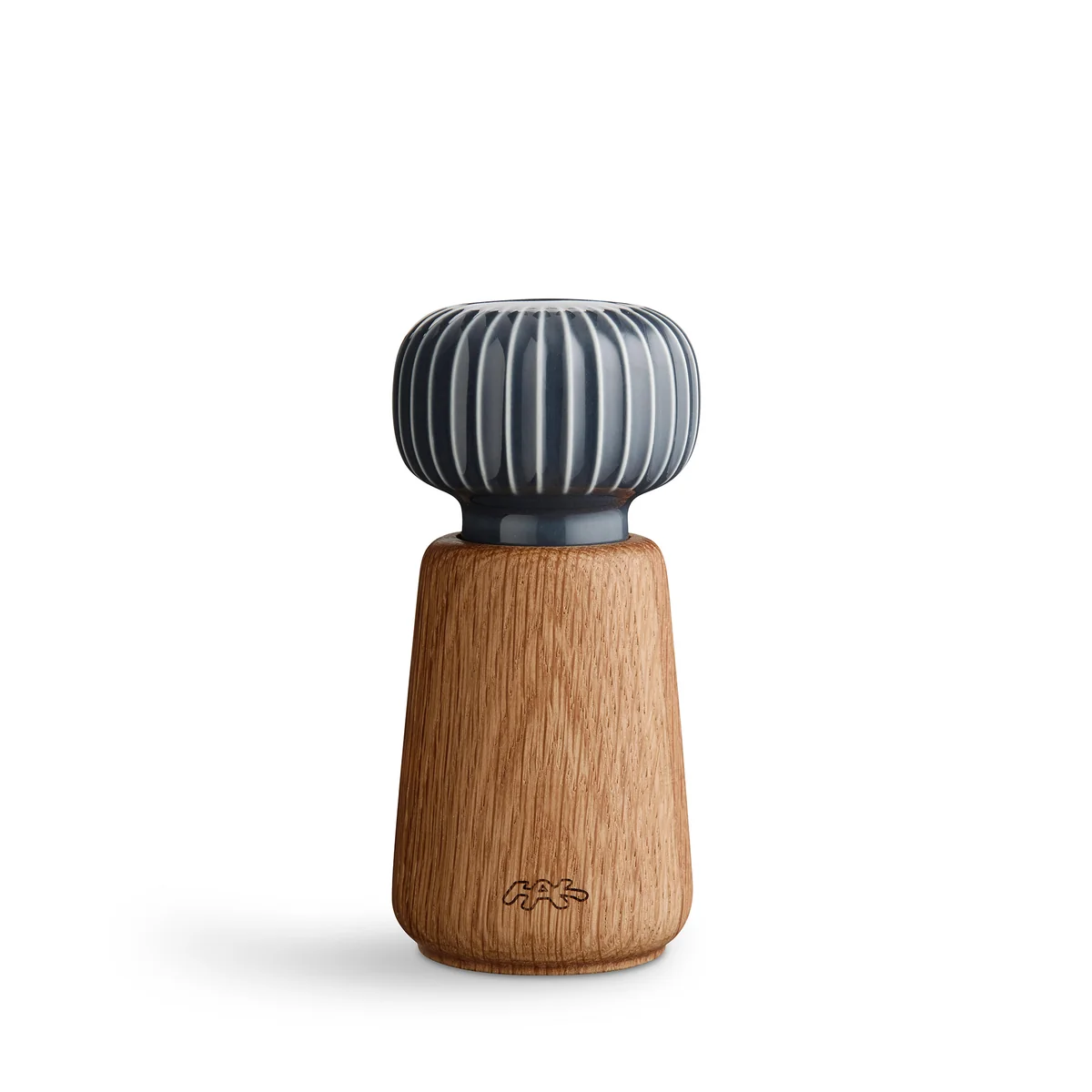 Die Salz- und Pfefferstreuer aus der Hammershøi-Kollektion von Kähler Design begeistern mit einem eleganten Materialmix aus Keramik und Holz. Das skandinavische Design von Hans-Christian Bauer ist angelehnt an die traditionellen Entwürfe von Svend Hammershøi. Dabei sind die Gewürzmühlen Teil einer ganzen Tableware-Serie, die sich individuell kombinieren lässt.
