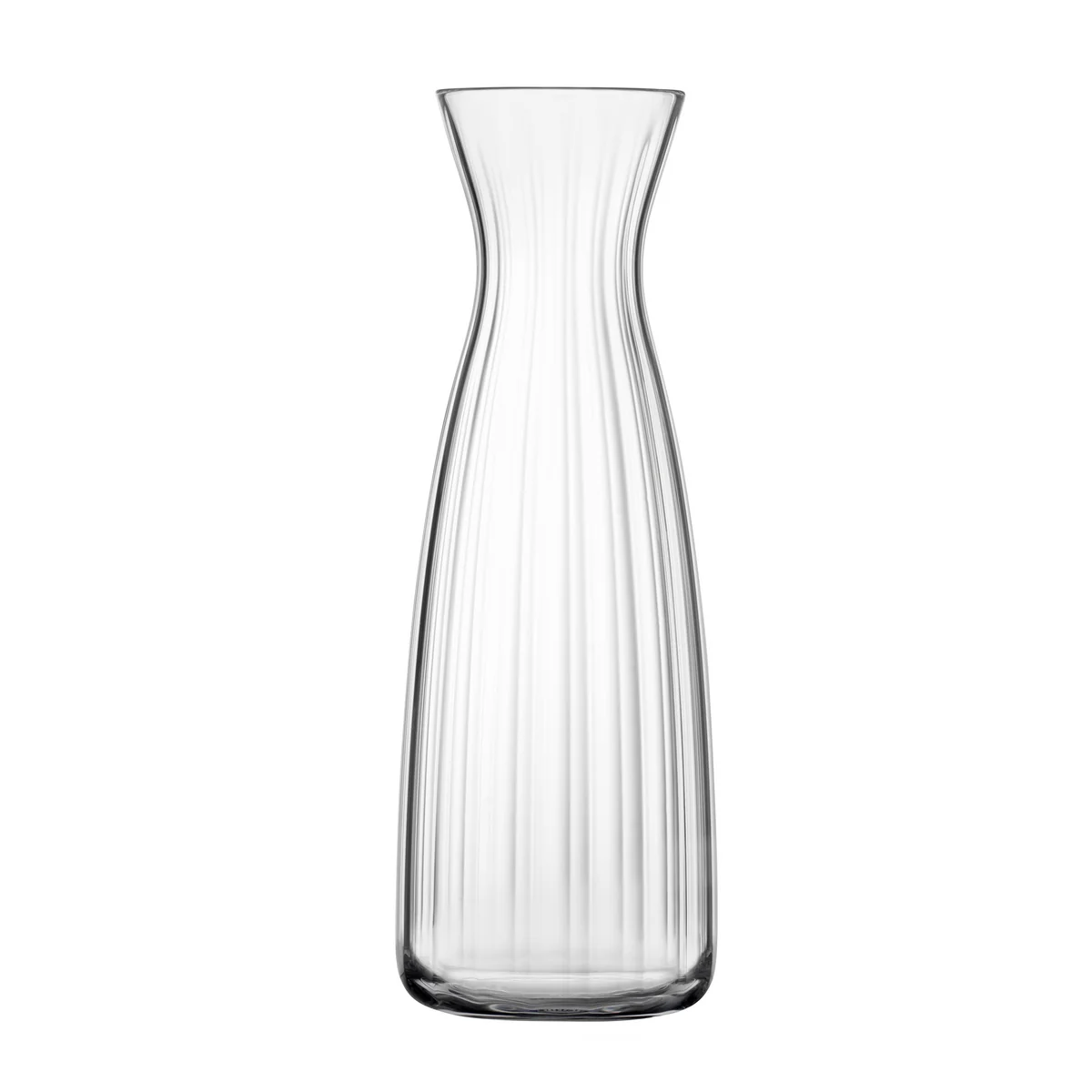 Die Karaffe wird in Finnland aus formgeblasenem Glas hergestellt. Mit einem Fassungsvermögen von 1 l machen sich Wasser, Säfte, Softgetränke und auch Milch gut in dem Gefäss. Die Karaffe liegt ausserdem gut in der Hand und passt mit dem Rillenmuster bestens zu den Trinkgläsern der Raami Serie. Sowohl allein aber besonders mit anderen Produkten aus der Raami Serie wird die Karaffe zu einem praktischen und zeitlosen Gegenstand für den täglichen Gebrauch.