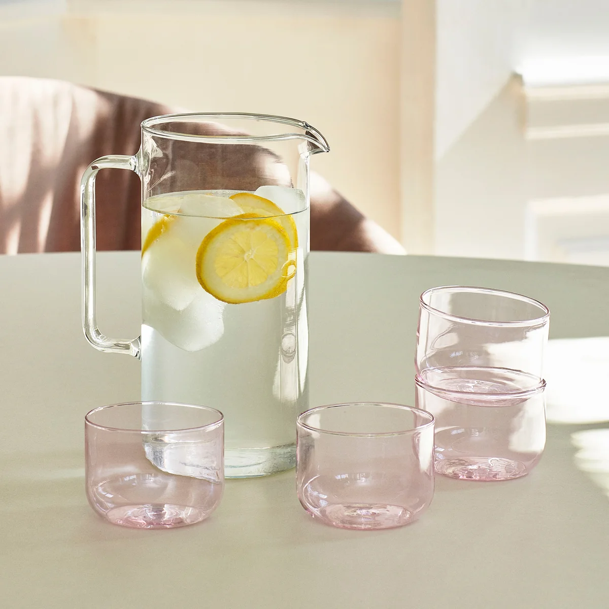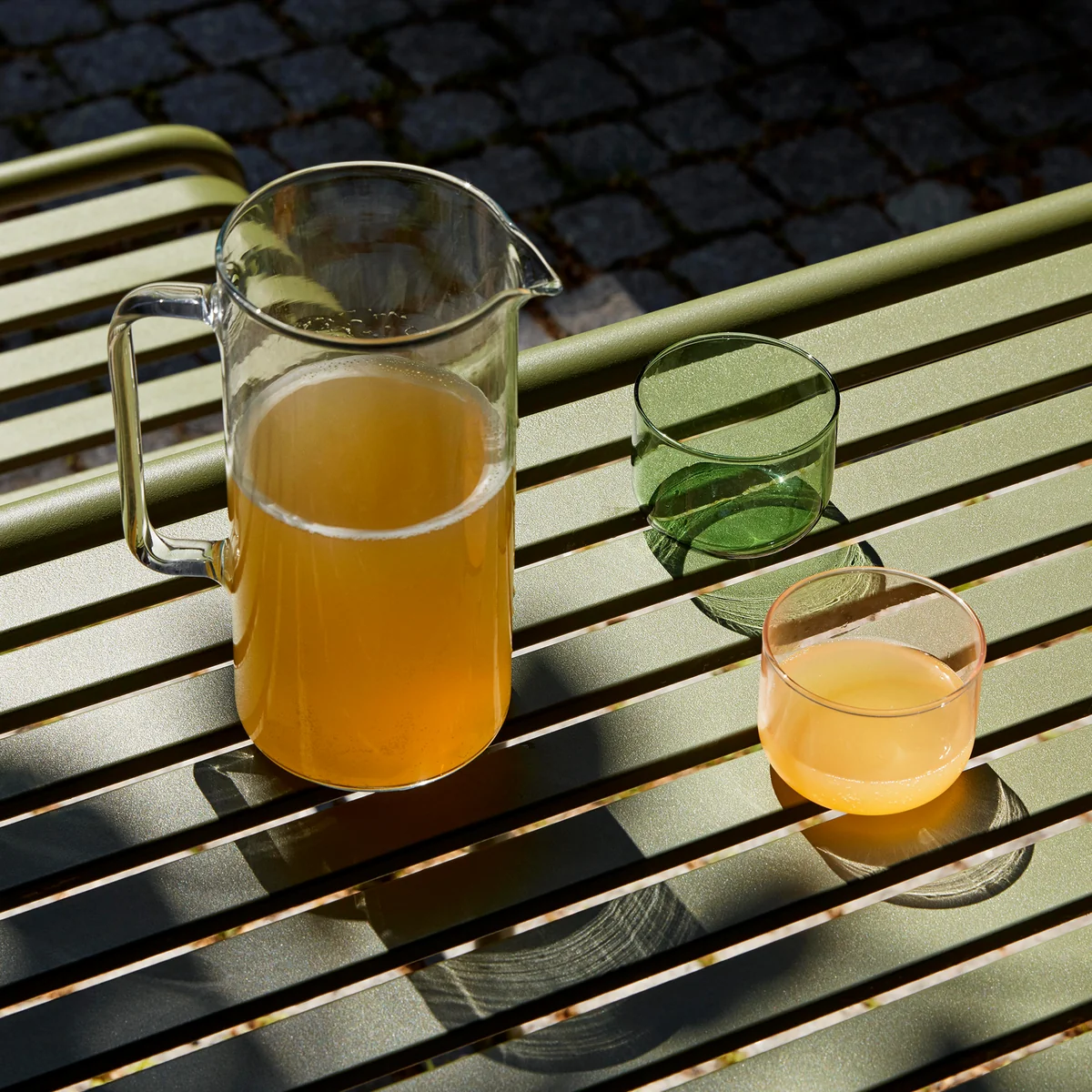 Die Karaffe von HAY ist Teil der Kitchen Market Kollektion von HAY und besticht sowohl durch ihre Optik, als auch durch ihre Funktionalität. Aus Borosilikatglas gefertigt, das aufgrund seiner Robustheit vor allem in Chemielaboren genutzt wird, ist die Karaffe besonders temperaturbeständig, sodass sie sich hervorragend zum Servieren von Heiss- und Kaltgetränken eignet. So können beispielsweise Säfte stilvoll mit Eiswürfeln und Obstscheiben oder auch frisch aufgebrühter Tee für Freunden und die Familie angeboten werden.