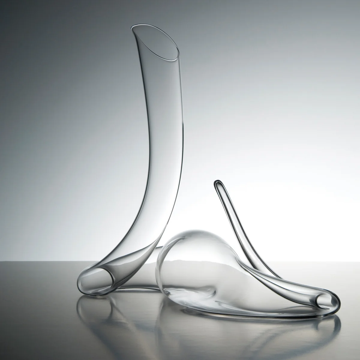 Die Doppelkammern-Funktion erzeugt einen Effekt, der bei einem herkömmlichen Dekanter erst nach Stunden erreicht werden kann. Der lange Hals des handgefertigten Dekanters aus Kristallglas, ideal zum Ausschenken, vitalisiert mit den beiden Luftkammern den Wein beim Servieren zusätzlich. Begleitet wird das Ausschenken von einem Glucksen; der akustische Beweis nicht nur für die perfekte Belüftung, sondern auch für die Kraft des Weines.