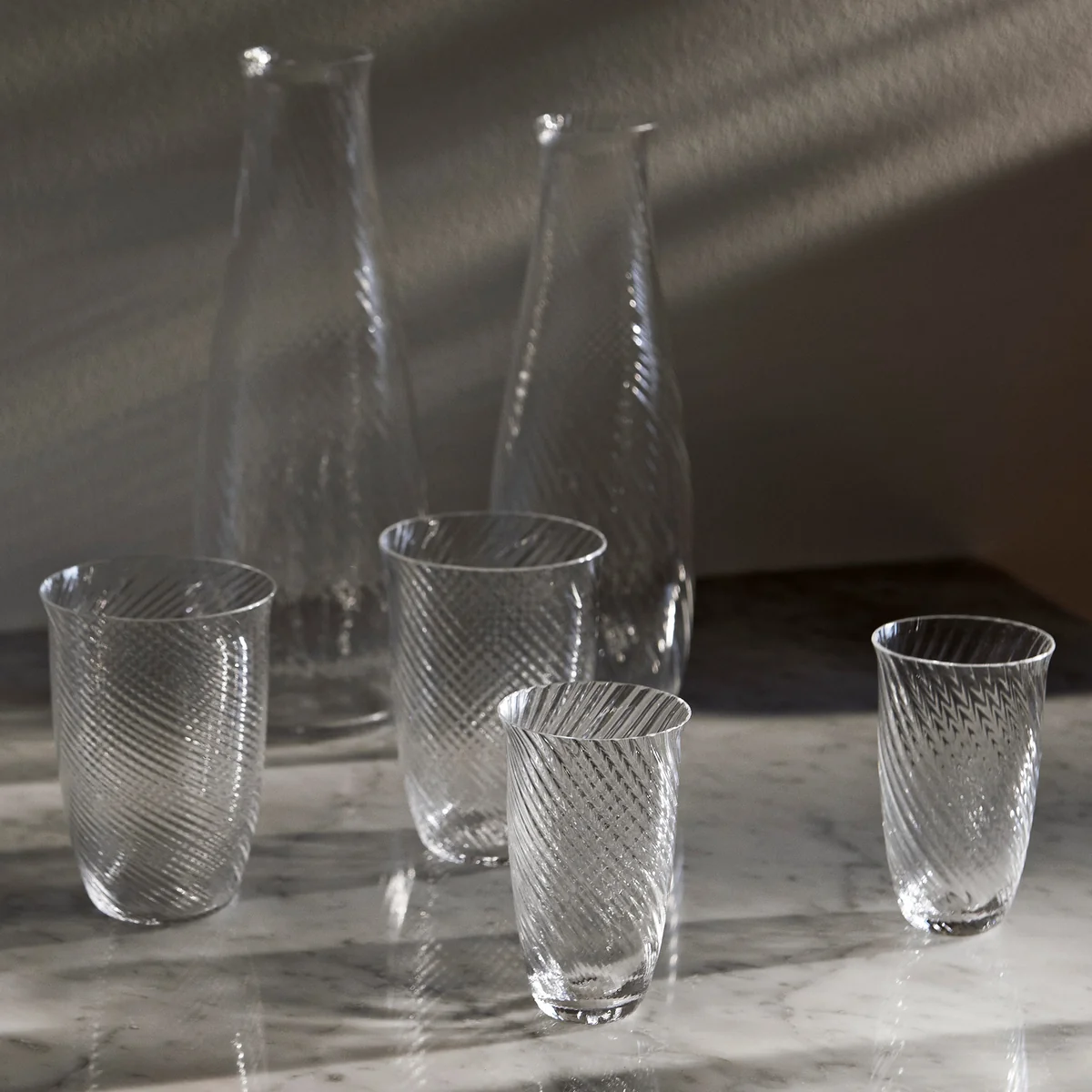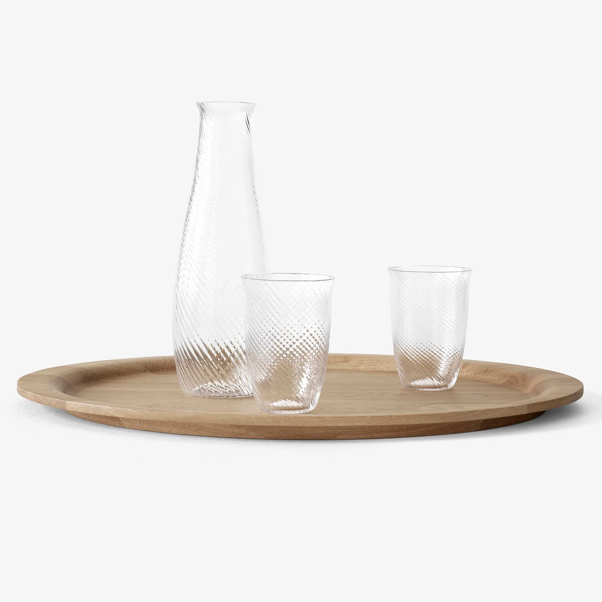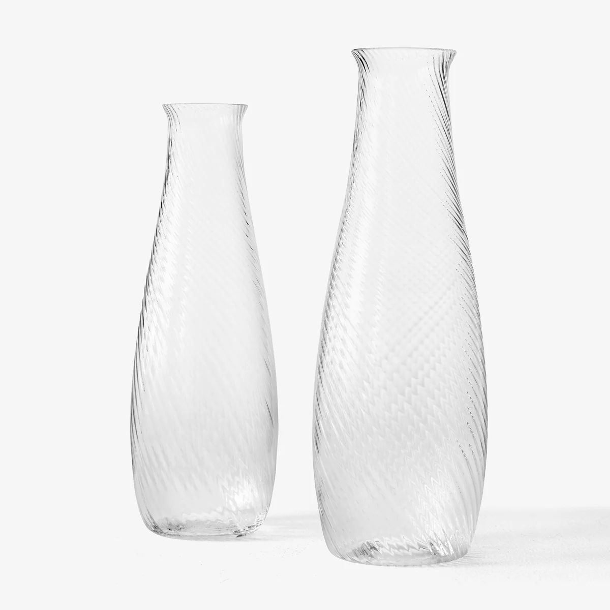 Die Collect Karaffe von &Tradition besticht durch ein subtiles Strudelmotiv, das die wirbelnde Natur des Wassers widerspiegelt. In Anlehnung an ein häufiges Merkmal im asiatischen Design hat die Karaffe einen leicht nach aussen abgerundeten Rand und eine ergonomische Form.