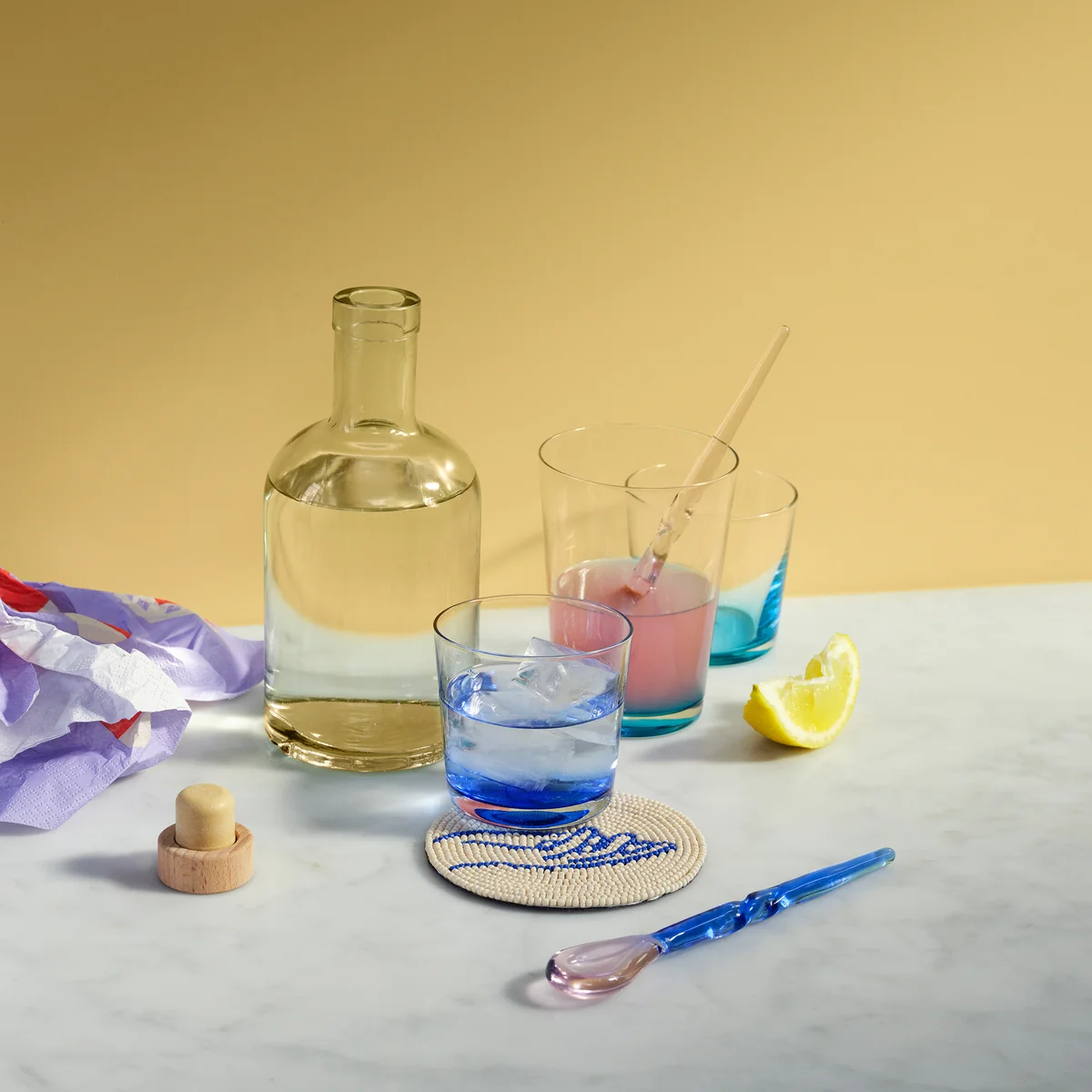 Die Hue Karaffe aus dem Hause Broste Copenhagen besticht mit seiner klassischen Optik. Den modernen Touch stellt die bunte Färbung des Untergrunds der Karaffe dar. Sie wird aus mundgeblasenem Glas gefertigt, wodurch es zu Abweichungen hinsichtlich der Grösse und Form kommen kann. Jedes Stück ist demnach ein Unikat. Hue kann optimal in den Mittelpunkt eines eleganten Tischgedecks integriert werden. Ideal kombinierbar mit dem Hue Trinkglas.