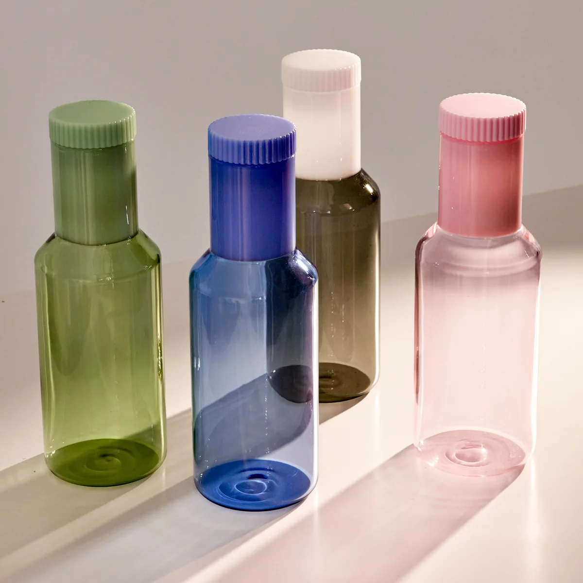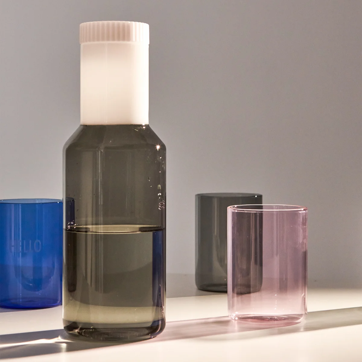 Die Tube Glaskaraffe des Herstellers Design Letters sorgt mit ihrer farbenfrohen Optik für ein äusserst elegantes Tischbild. Der dicht schliessende Deckel und das schmale, röhrenförmige Design der Karaffe eignen sich hervorragend für die Aufbewahrung im Kühlschrank. So bleiben Wasser, Säfte, Eistees oder Cold Brew Kaffees schön kühl. Tubes Korpus wird aus Borosilikatglas handgefertigt. Da es sich um einen handgefertigten Artikel handelt kann es zu leichten Produktabweichungen kommen. In verschiedenen Farben mit einem Fassungsvermögen von einem Liter erhältlich.