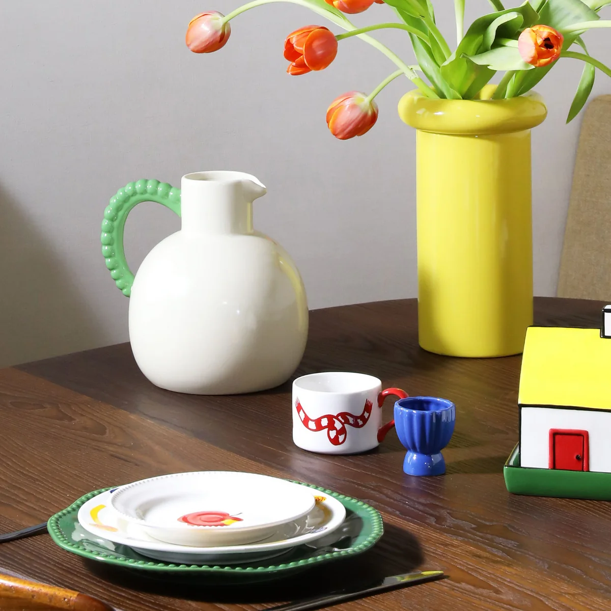 Die Perle Karaffe von &klevering ist ein elegantes Highlight aus hochwertigem Steinzeug, das jeden Tisch mit einem markanten Akzent versieht. Der kontrastfarbene Perle-Griff setzt ein starkes Statement und verleiht der Karaffe eine unverwechselbare Ausstrahlung. Kombinieren Sie sie mit den passenden Perle Tellern, um an einem heissen Sommerabend ein harmonisches und stilvolles Tischarrangement zu kreieren – ideal für erfrischende Getränke und besondere Momente.