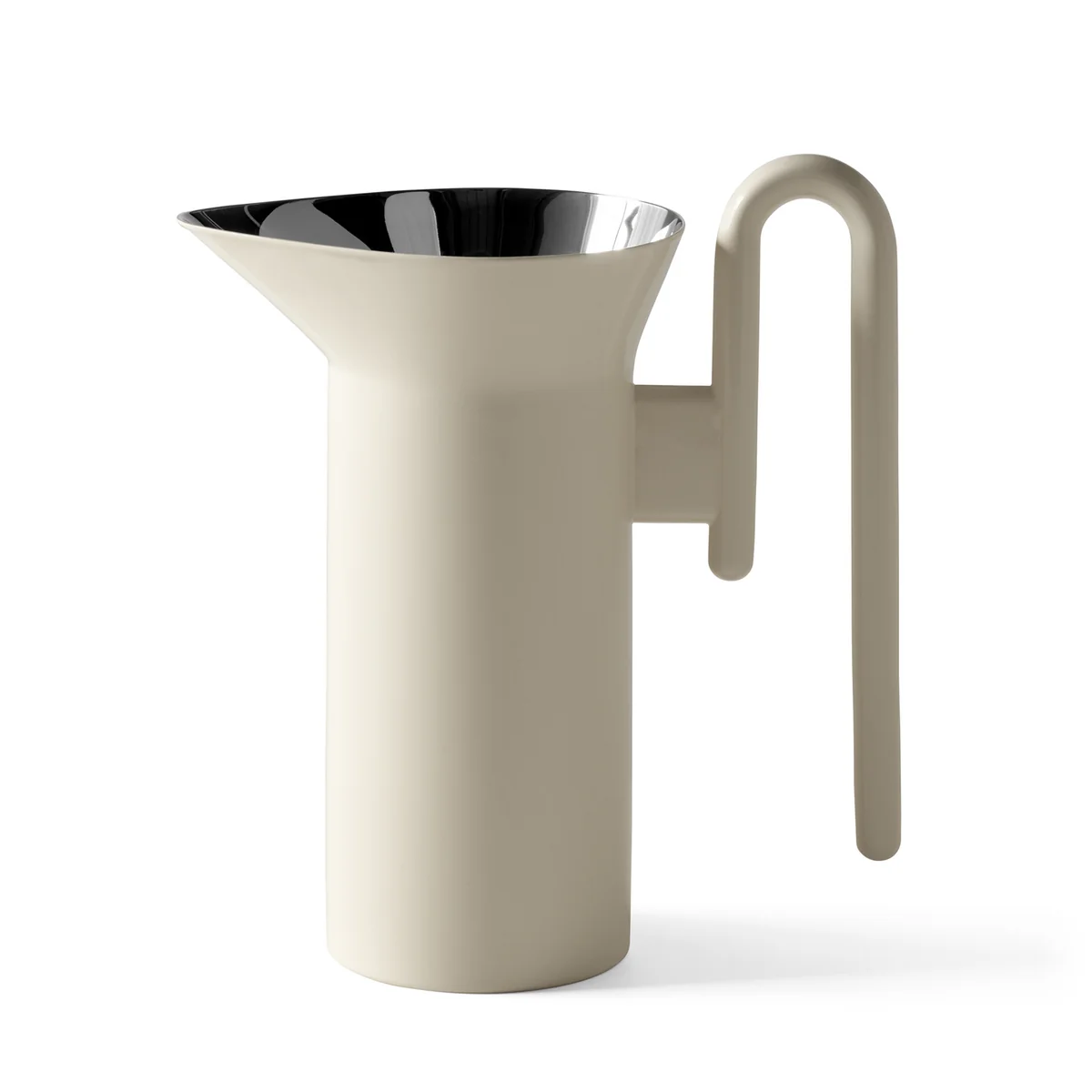 Der Momento JH38 Krug aus dem dänischen Hause &Tradition ist das Ergebnis jahrelanger Produktforschung, sodass ein perfektioniertes Gefäss entstanden ist. Der Krug kann dank seiner idealen Ausgiessform wunderbar für das Servieren von Limonade, Wasser und Co verwendet werden. Mit einem Fassungsvermögen von einem Liter ist JH38 in unterschiedlichen Varianten aus Edelstahl erhältlich.