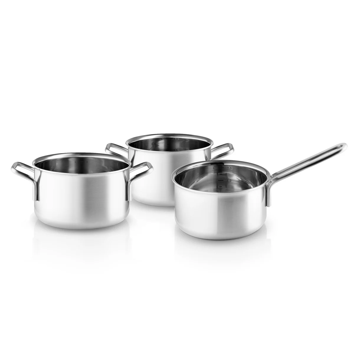 Das Eva Trio Kochtopfset begeistert mit zwei Töpfen unterschiedlicher Grösse plus einer Stielkasserolle. Das praktische Set eignet sich zum alltäglich Kochen und für aufwendige Dinner-Abende mit Freunden und der Familie zu Geburtstagen oder auch zu Weihnachten. Das Design der Töpfe wurde ursprünglich 1977 von Ole Palsby entworfen. Im Design unverändert bieten die verbesserten Eva Trio Töpfe verbesserte Funktionen mit gleicher, zeitloser Optik.