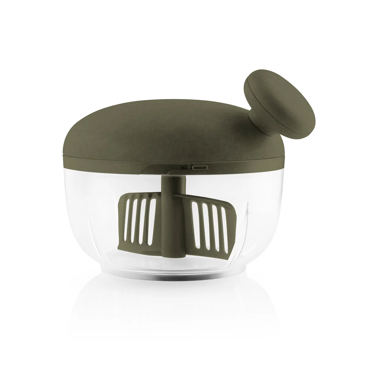 Der Green Green Tool Mini-Zerkleinerer von Eva Solo ist ein umweltfreundlicher und äusserst stylischer Mini-Mixer für Speisen. Mit seinem reduzierten Design und seiner praktischen Funktionalität bringt er skandinavisches Design in die Küche. Egal, ob für Pesto, Saucen, Dips, Gemüse, oder Eis: Der Green Tool Mini-Zerkleinerer setzt echte Akzente - und das dank des Seilzugs völlig ohne Stromkabel. Die Bedienung erfolgt durch Ziehen am Griff, je nach Mahlgrad lässt sich das so wiederholen.