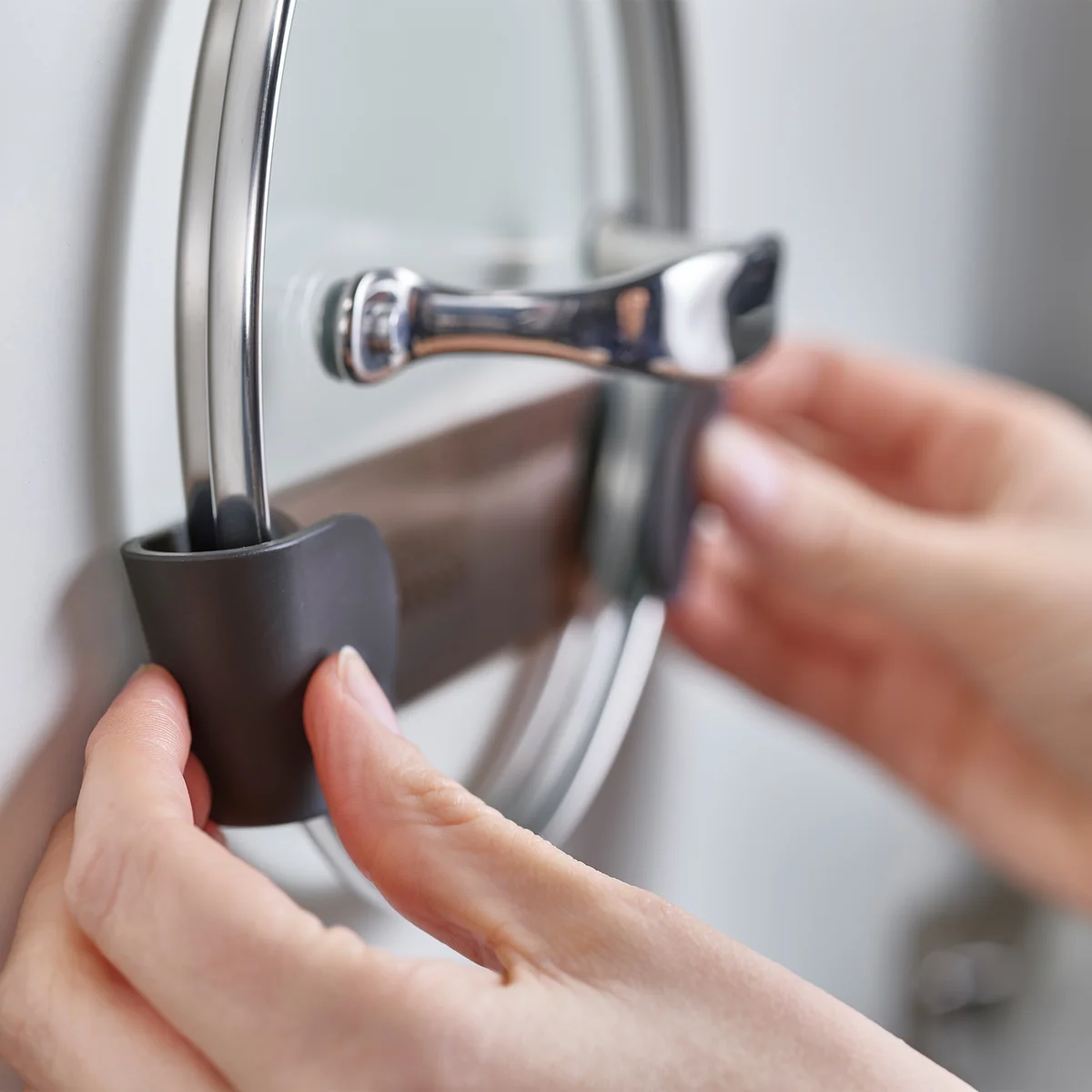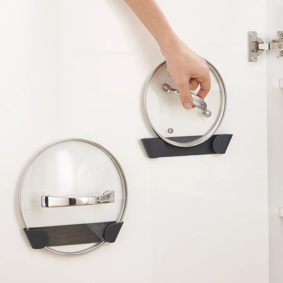Zu der CupboardStore Serie gehört ausserdem eine Topfdeckel-Halterung. Im praktischen 4er-Set erhältlich, bieten die Halterungen eine schmale und organisierte Aufbewahrungslösung für Topfdeckel. Perfekt für die Anbringung an der Innenseite von Schranktüren wird auch dieser Platz optimal genutzt. Die Halterungen eignen sich für Deckel mit einem Durchmesser von bis zu 24 cm.