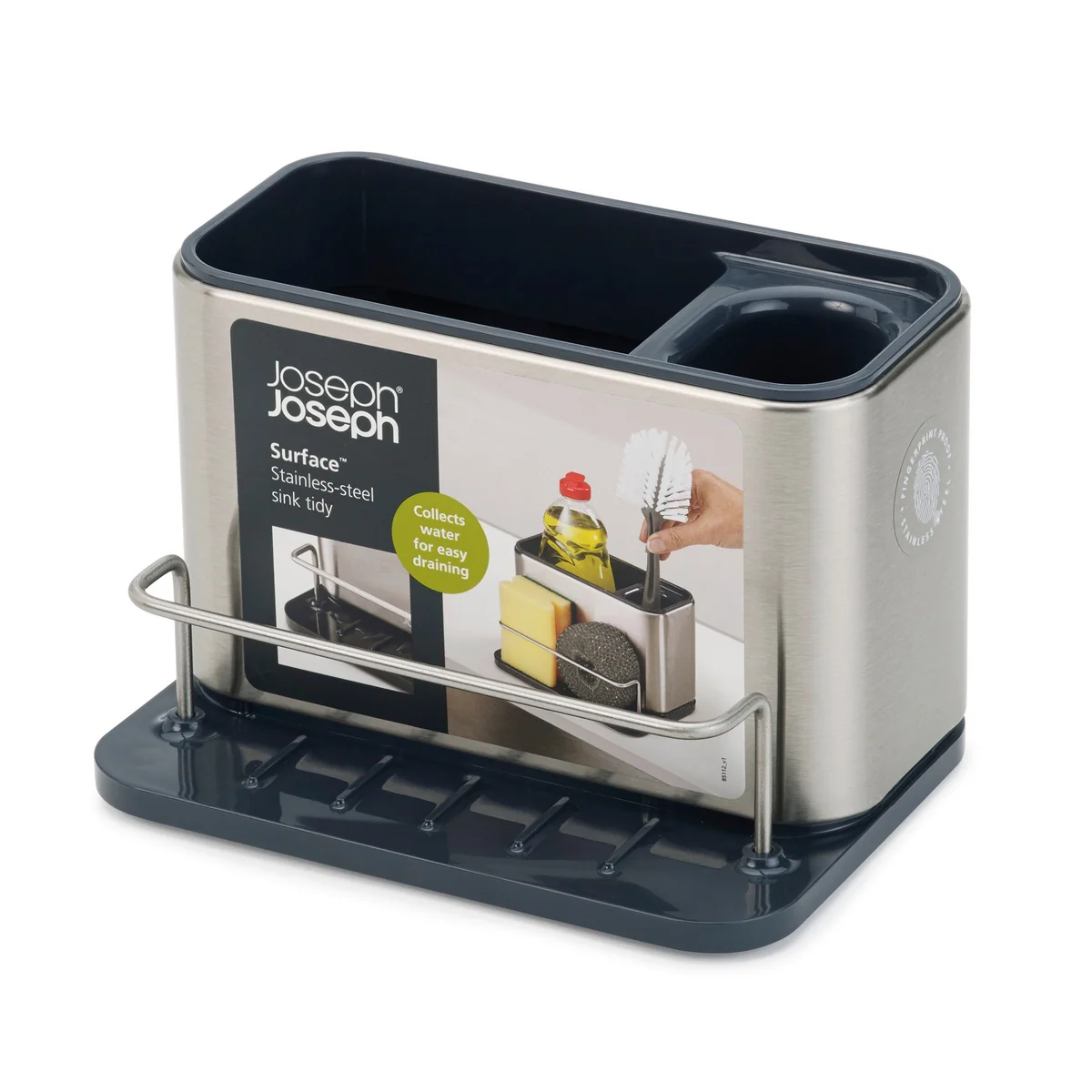 Der Surface Spül-Organizer von Joseph Joseph ist ein Ordnungshelfer im edlen Design. Er gehört zu einer Serie an Spülhelfern, die aus rostfreiem Edelstahl hergestellt werden.
