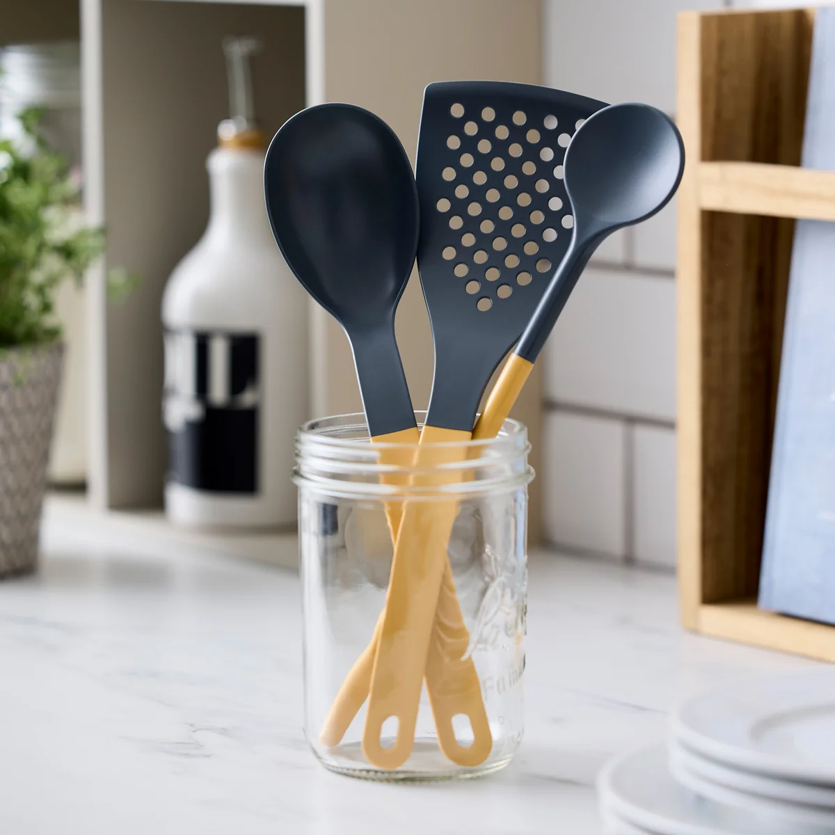 Hergestellt aus langlebigem und hitzebeständigem Kunststoff, sind die Küchenhelfer nicht nur robust, sondern auch schonend für Ihre Töpfe und Pfannen. Mit ihrem funktionalen Design und den ergonomischen Griffen liegen sie bequem in der Hand und erleichtern die Zubereitung von Speisen.