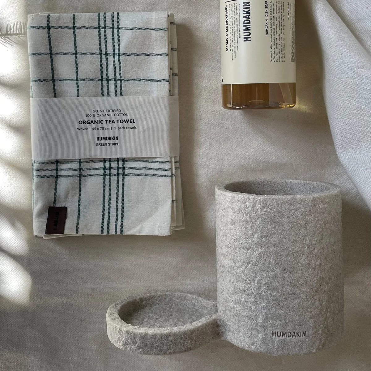 Dieses Geschirrtuch aus GOTS-zertifizierter Biobaumwolle von Humdakin kommt im praktischen 2er-Set und wird aus einem dicht gewebten Material hergestellt. Das sorgt für eine hohe Saugstärke und eine lange Haltbarkeit – genau das richtige für ein Küchentextil, das mehrmals am Tag verwendet wird.