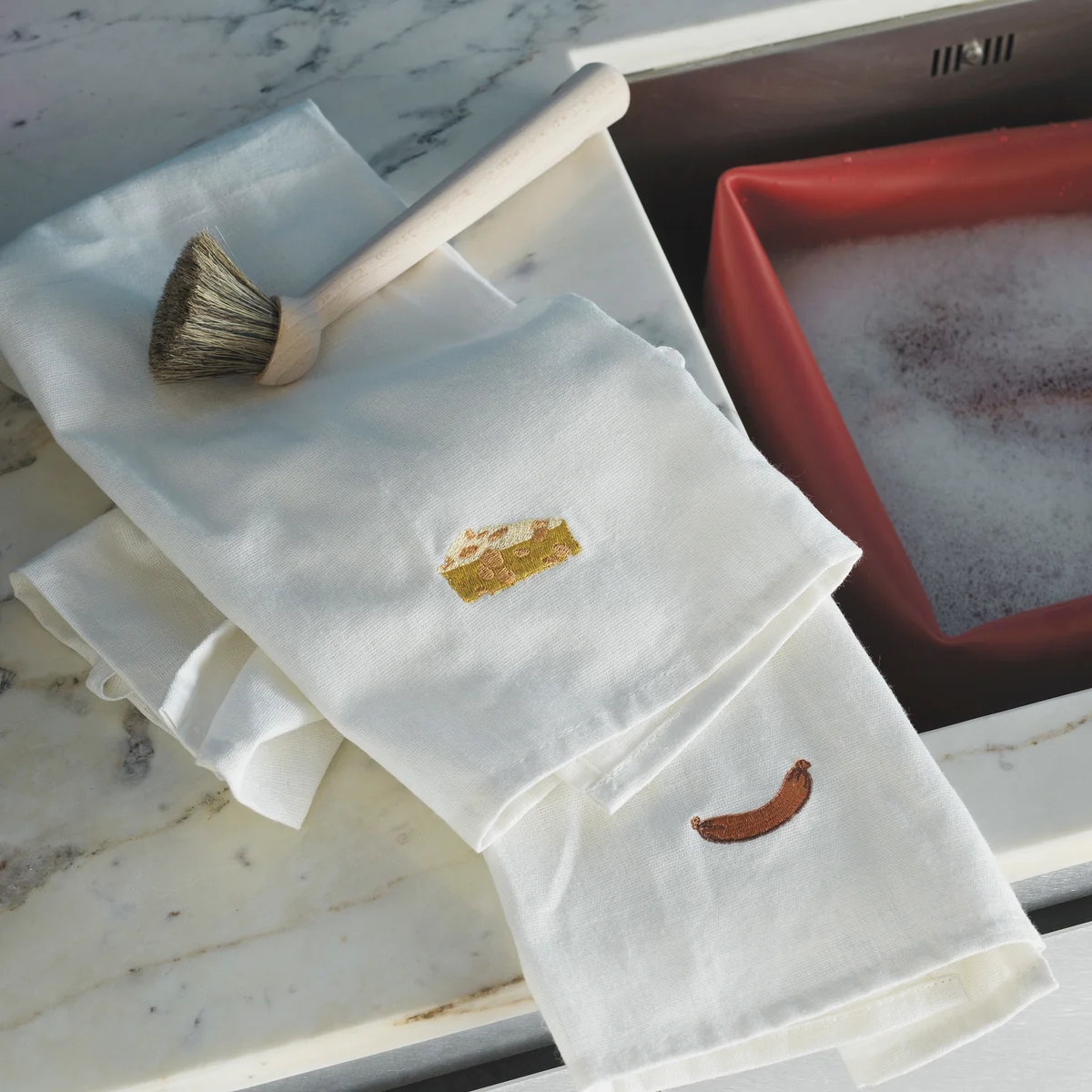 Das Yummy Geschirrtuch von Normann Copenhagen präsentiert sich mit wunderschönen und fantasievollen Stickereien. Hergestellt aus Leinen und Baumwolle, verfügt das Geschirrtuch über eine OEKO-TEX-Zertifizierung. In unterschiedlichen Farben und Grössenausführungen erhältlich, sorgt das Geschirrtuch für blickfangende Akzente in der Kücheneinrichtung und ist funktional zugleich.