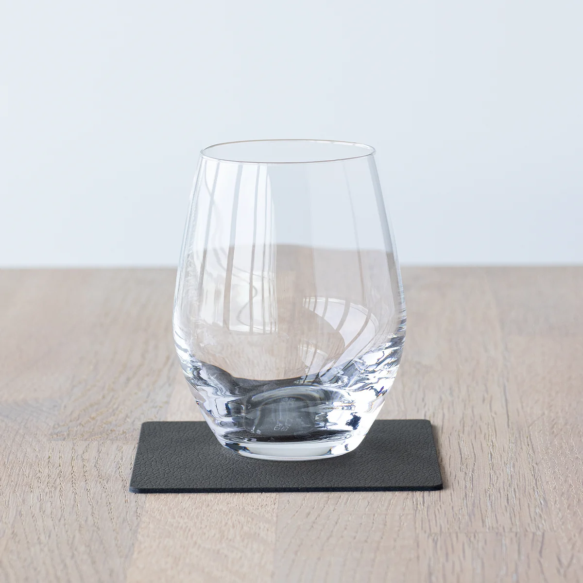 Die Glasuntersetzer Square von Lind DNA sind in der Variante Core erhältlich: Das Recyclingleder behält hier seine ursprüngliche Farbe.