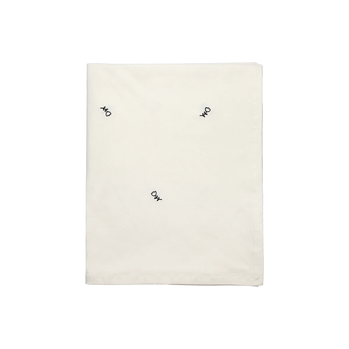 Die Mai Tischdecke von Broste Copenhagen bringt mit ihrem schlichten und eleganten Design Stil und Natürlichkeit auf jeden Tisch. Gefertigt aus weicher Baumwolle in Off-White, wird die Tischdecke durch kleine, fein bestickte Blumen in Schwarz verziert, die ihr einen charmanten und individuellen Charakter verleihen.