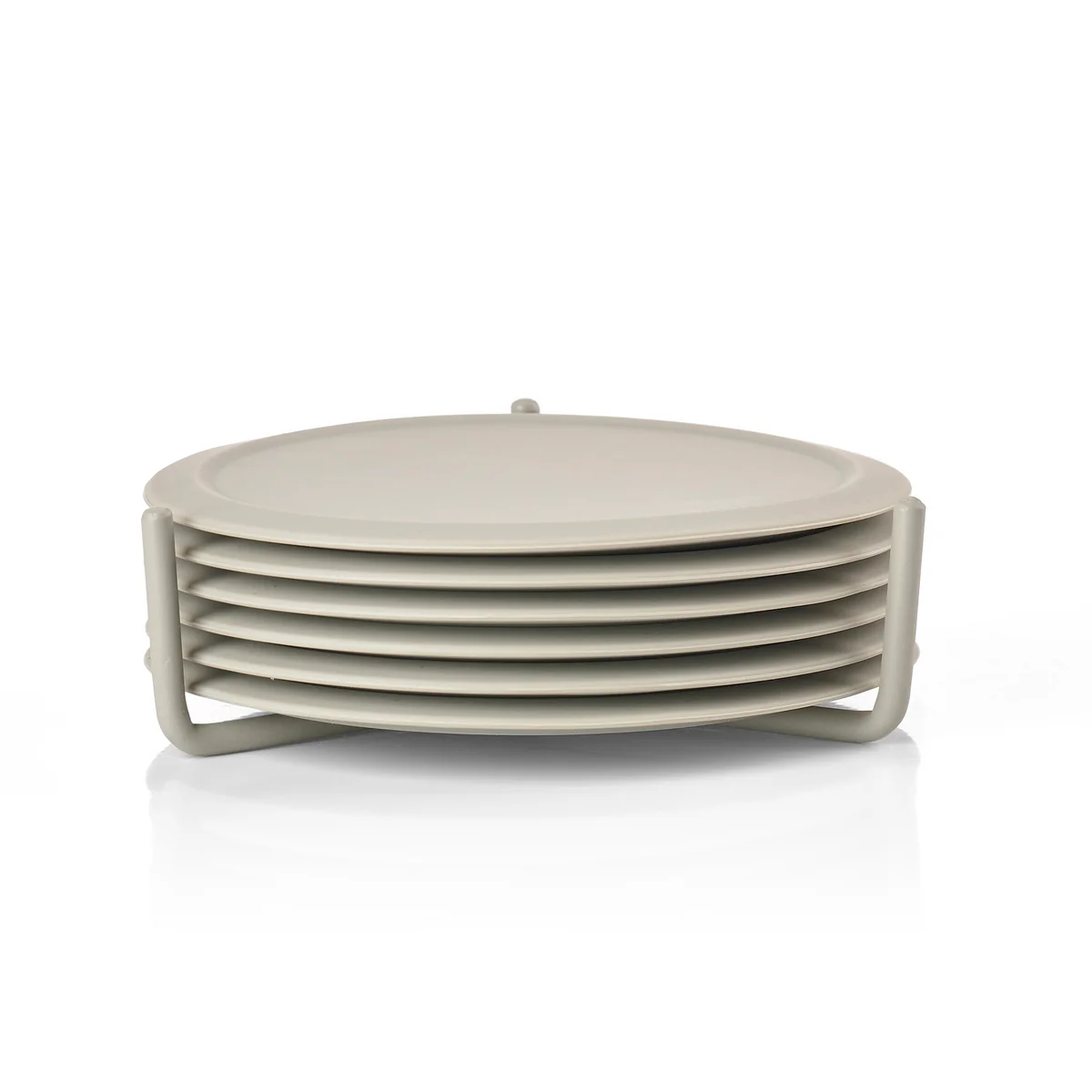 Dank der zugehörigen Basis aus Metall können die von VE2 entworfenen Glasuntersetzer gesammelt und nach der Nutzung platzsparend verstaut werden. Erhältlich sind die Glasuntersetzer in verschiedenen Farben, die sich auch untereinander bestens kombinieren lassen und wunderbar zur Peili Serie von Zone Denmark passen.