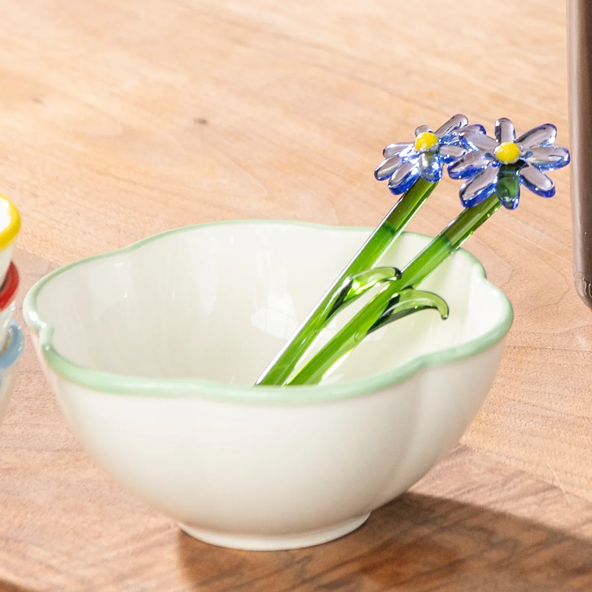 - Set aus 2 Glaslöffeln mit handgefertigten floralen Details