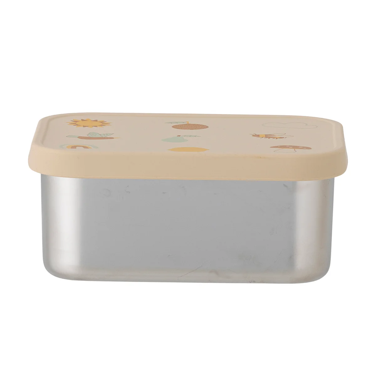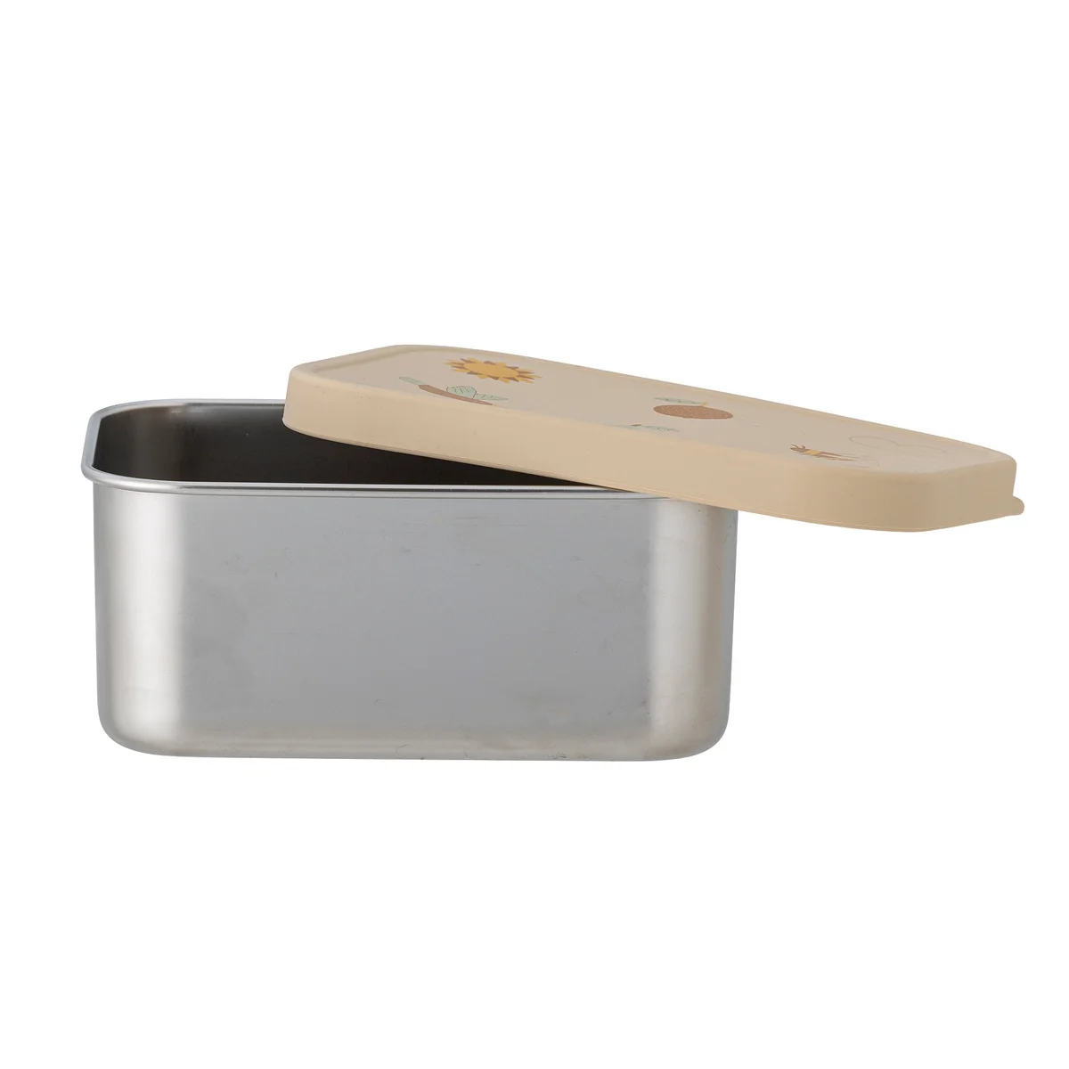 Die Agnes Lunchbox von Bloomingville MINI ist der perfekte Begleiter für kleine Abenteurer zur Mittagszeit! Der charmante Deckel ist mit einem fröhlichen Motiv in sanften Farben auf einem beigen Hintergrund gestaltet. Diese Lunchbox vereint spielerische Fantasie mit der robusten Funktionalität von Edelstahl und sorgt so für Spass und Zuverlässigkeit bei jeder Mahlzeit.