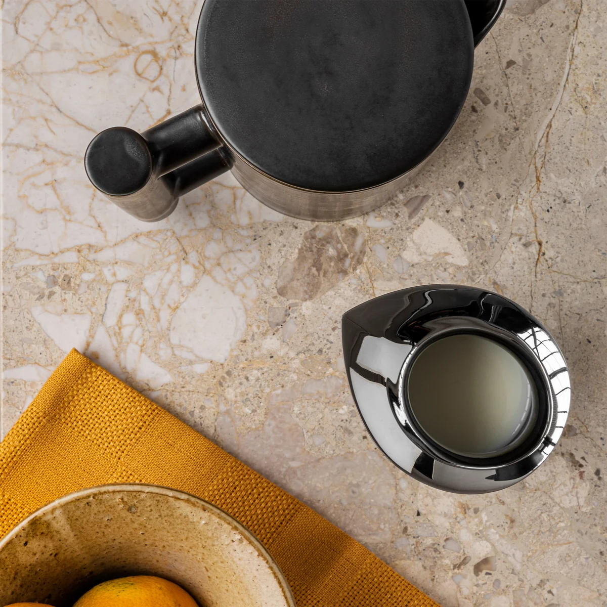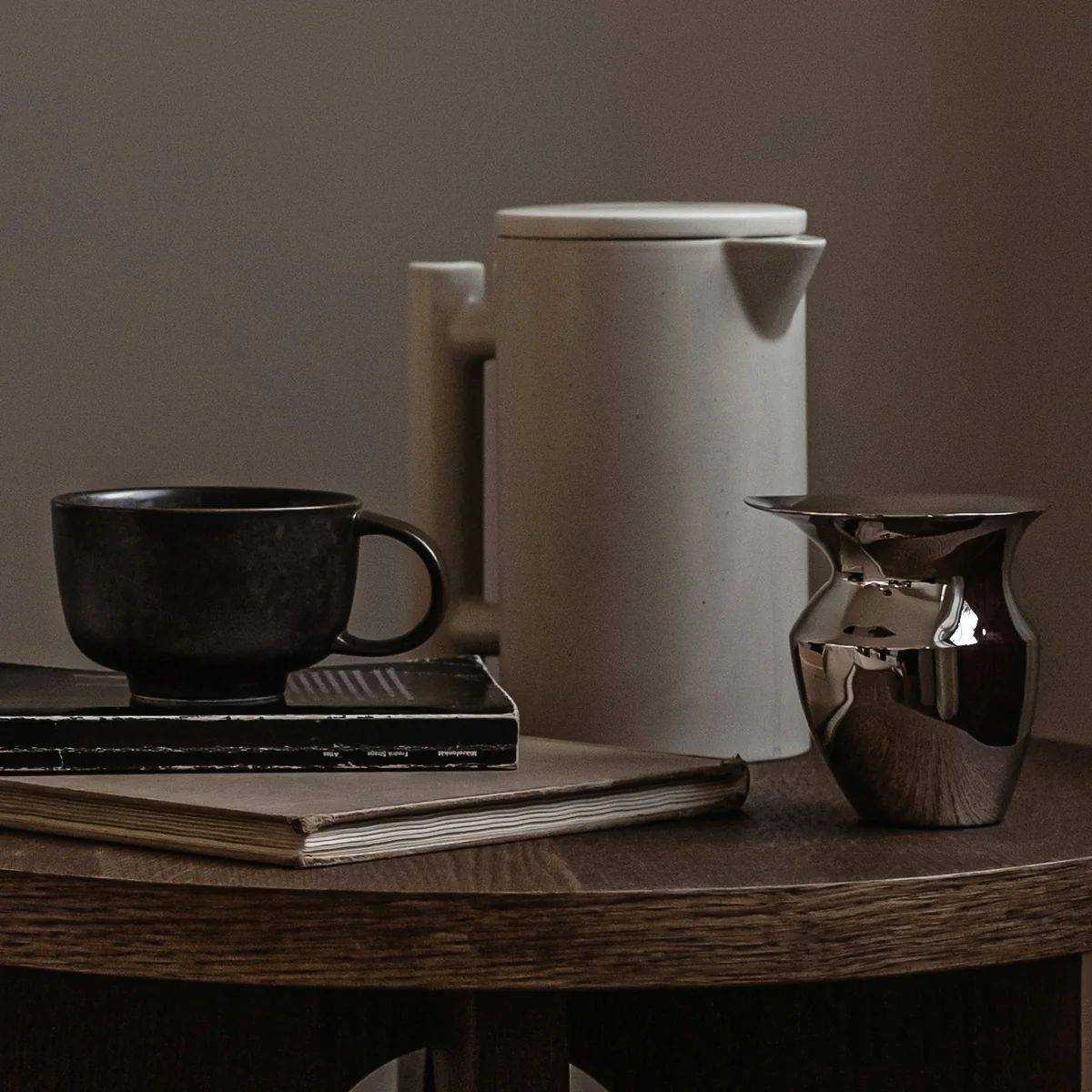 Das Etruscan Milchkännchen des Herstellers Audo ist eine moderne Interpretation des klassischen römischen Krugs. Das Design aus poliertem Edelstahl mit geschwungenen Silhouetten kann wunderbar als Dekorationsobjekt ganz klassisch als kleines Kännchen für Milch fungieren. Perfekt proportioniert für einfaches Ausgiessen von Milch oder Sahne ist es nicht nur funktionell ein Vergnügen für Benutzer, sondern optisch ebenso für jeden Betrachter.