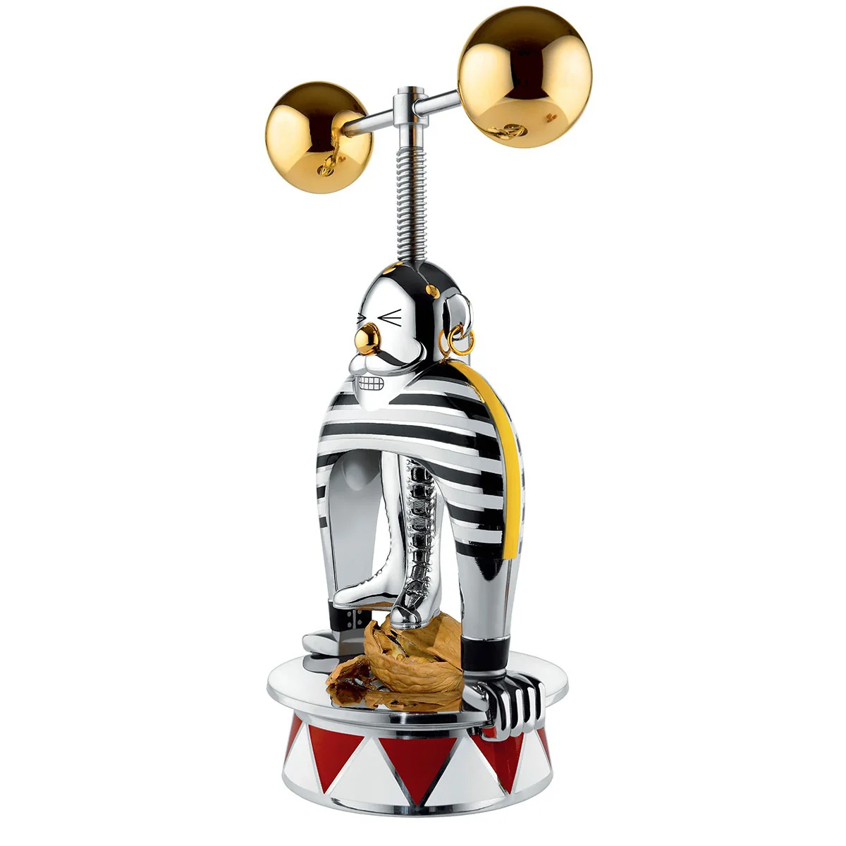 Der The Strongman Nussknacker gehört zu der Limited Edition aus der Circus Kollektion von Alessi. Er wurde von Marcel Wanders entworfen und ist ein Nussknacker in Form eines Muskelprotzes. Die Nuss wird auf den Zirkus Podest gelegt und dann im Schraubverfahren von den Füssen des Muskelmannes zerdrückt. Seine Hände stützen sich an der Plattform ab und sein Gesicht ist vor Anstrengung verzerrt, denn zwei Gewichte liegen auf seinem Kopf, die durch einfaches Drehen die Nuss zerdrücken.