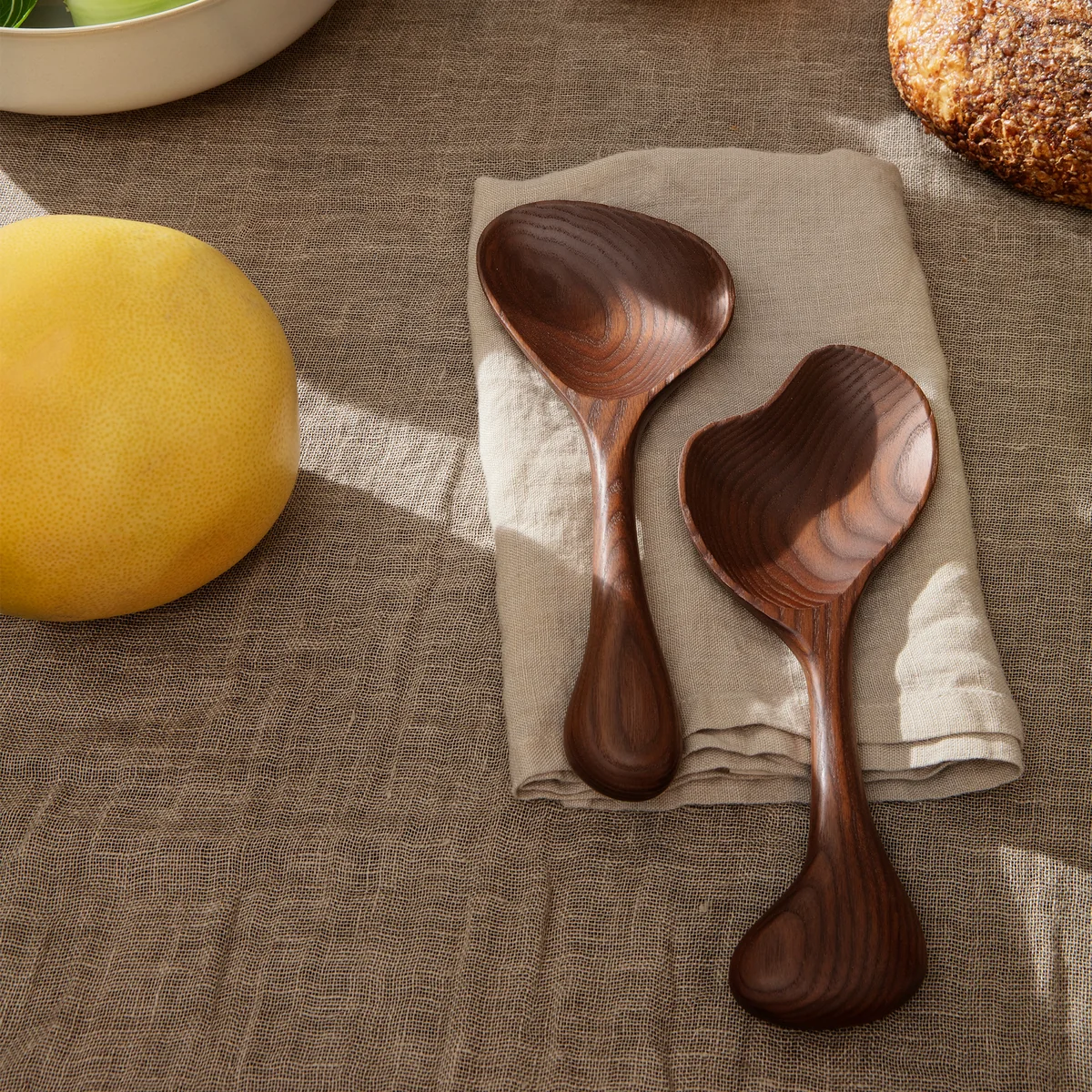 Das Os Salatbesteck von Ferm Living bringt Exzellenz und Extravaganz in den Alltag: Abgeleitet von dem französischen Wort für Knochen, präsentiert das Besteck die abgerundeten Formen von Knochen. Die weichen Kurven sowie die skulpturalen Details sorgen für einen garantierten Blickfang an jedem Esstisch. Hergestellt aus FSC-zertifiziertem™ Eschenholz mit verkohltem Finish, verfügt das Salatbesteck über einen bedeutsamen künstlerischen Ausdruck, der die langweilige Norm von Alltagsgegenständen aufhebt.