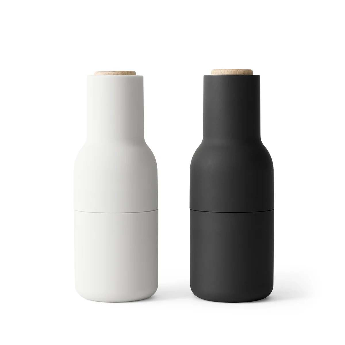 Als Material für die Bottle Grinder Mühle wählten die Designer von Norm und Audo ABS-Kunststoff mit einem Gummibelag. Die Mühle verfügt über ein haltbares, leistungsstarkes keramisches Mahlwerk, das Salz und Pfeffer zuverlässig kleinkriegen.