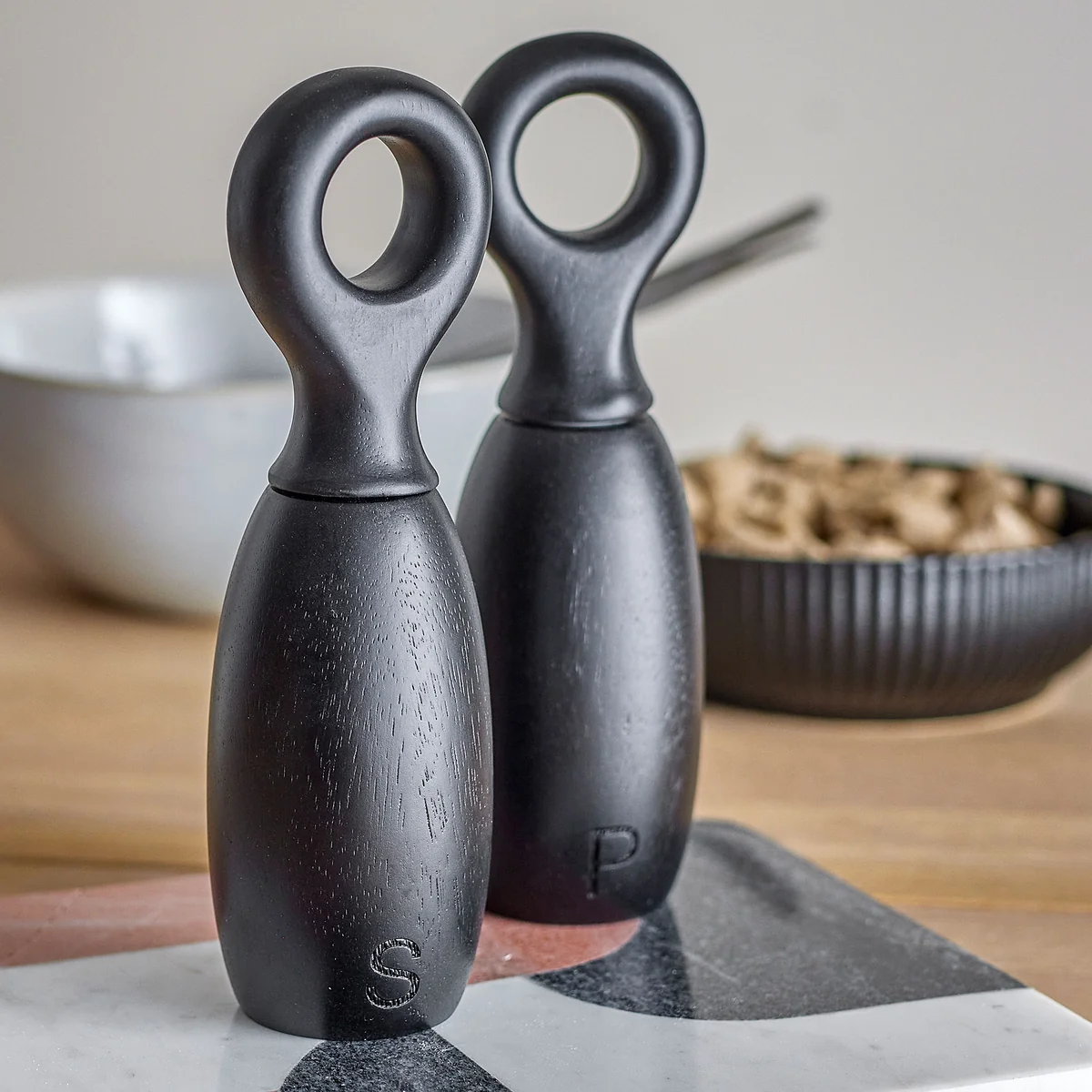 Die Salz- und Pfeffermühlen Martim von Bloomingville sind im Set erhältlich. Die ansprechenden Mühlen sind aus Gummibaumholz gefertigt und haben einen grossen runden Griff, der sich leicht drehen lässt. Die Salz- und Pfeffermühlen sind äusserst dekorativ auf dem Küchentisch oder dem Esstisch.