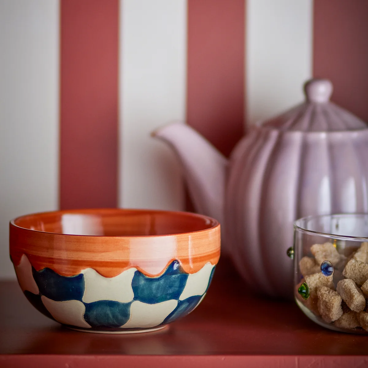 Bloomingville - Check Schale, 590 ml, blau (4er Set)