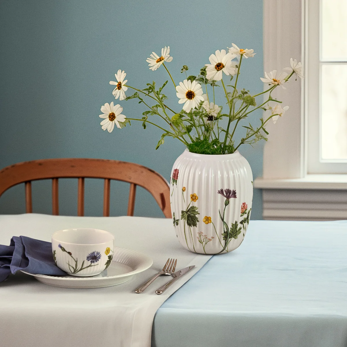 Die Hammershøi Summer Schale von Kähler Design verbindet skandinavische Handwerkskunst mit einem frischen, sommerlichen Look. Inspiriert von der klassischen Hammershøi-Serie, besticht sie durch ihre feine Rillenstruktur und das zarte Blumen- und Naturmotiv. Perfekt für Müsli, Desserts oder kleine Snacks – stilvoll geniessen war noch nie so einfach.