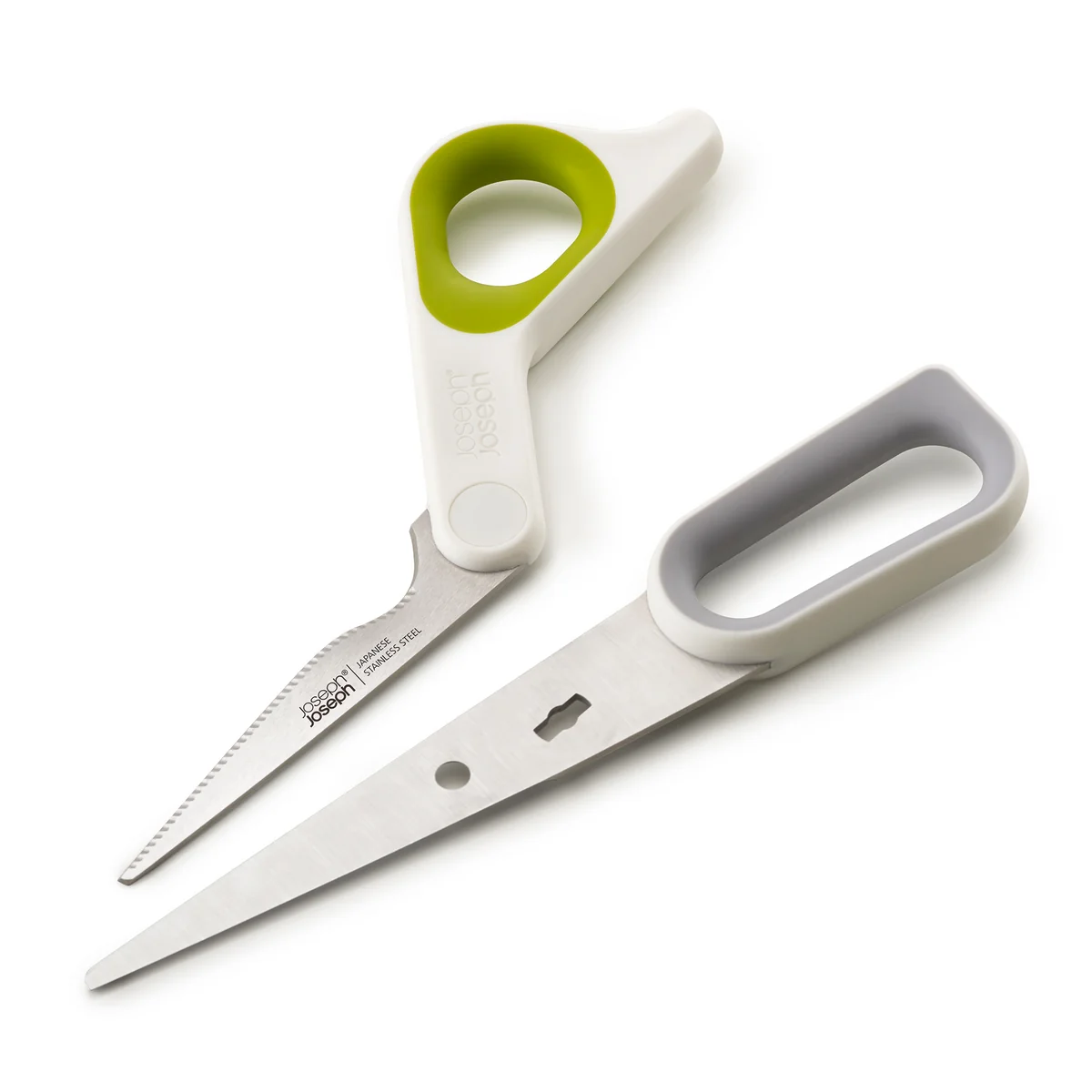 Die Powergrip Küchenschere von Joseph Joseph eignet sich ideal für die Küche zum Schneiden und Zubereiten von Lebensmitteln. Mit einem integrierten Daumengriff kann die Schere auch mit beiden Händen benutzt werden, wodurch mehr Kraft aufgewendet werden kann. So ist die Schere auch optimal dafür geeignet, um Hühnerknochen oder Holzspiesse zu durchtrennen.